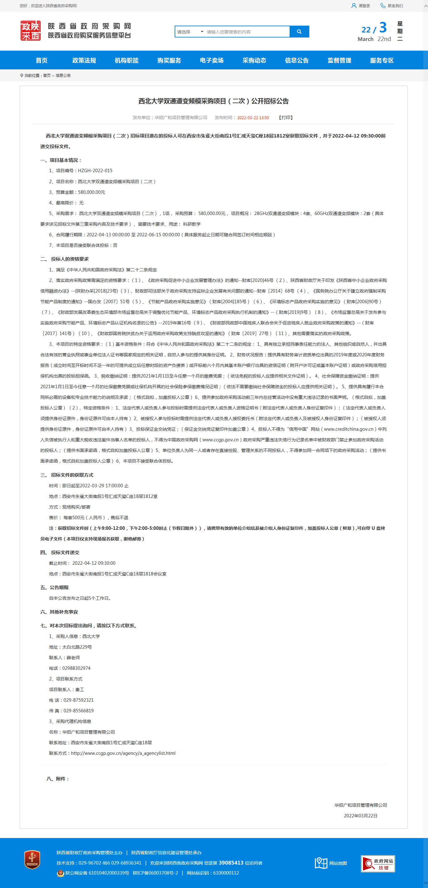 8868体育登录双通道变频模采购项目(二次)公开招标公告 作者: 编辑:薛利娟 时间:2022-03-22 原公告链接:http://113.200.80.230/notice/noticeDetail.do?noticeguid=8a85be337f834b98017fb021a0274863