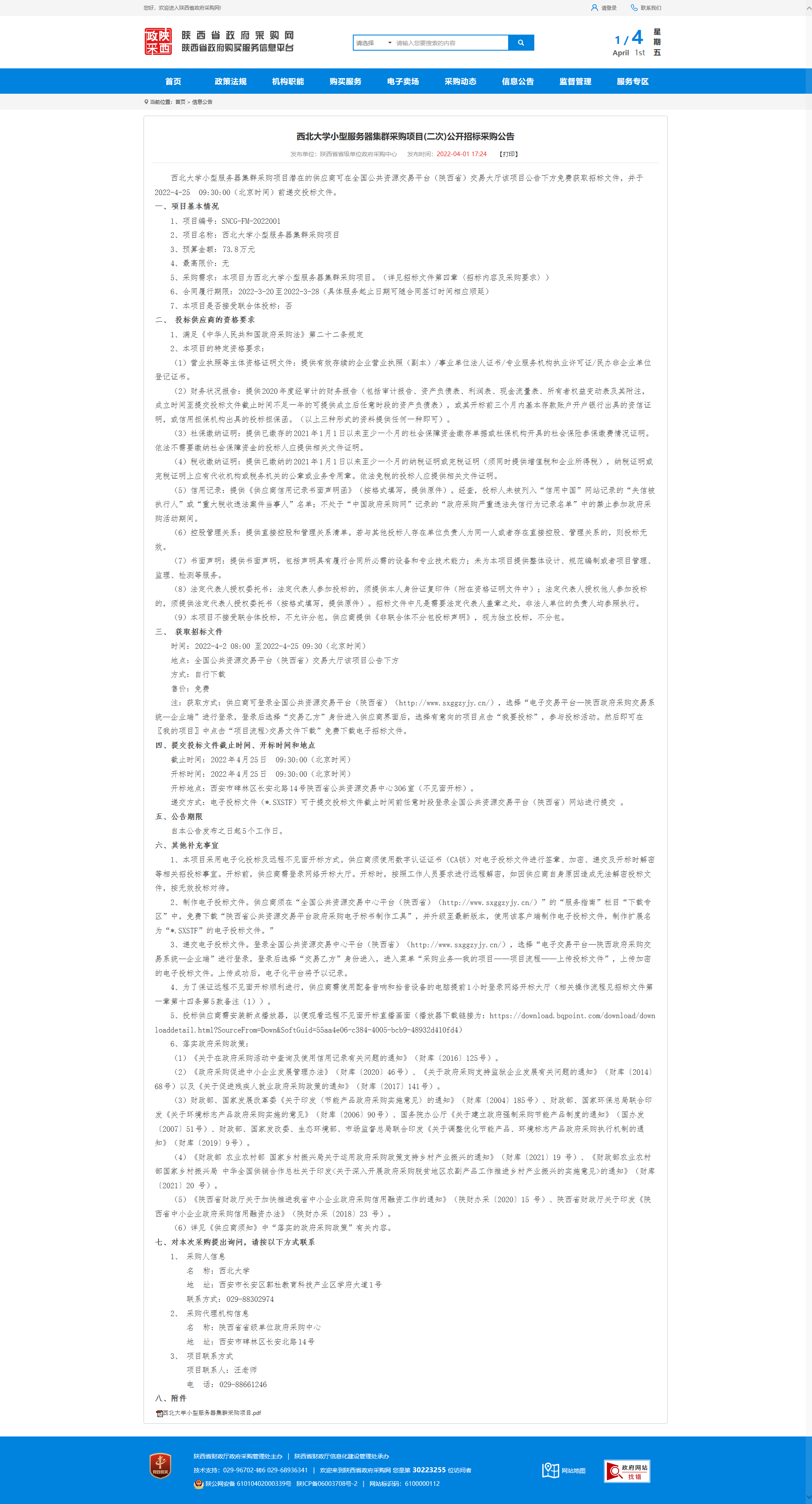 8868体育登录小型服务器集群采购项目(二次)公开招标采购公告 作者: 编辑:薛利娟 时间:2022-04-01 原公告链接:http://113.200.80.230/notice/noticeDetail.do?noticeguid=8a85be387f91f0bf017fe46ddbfd001c