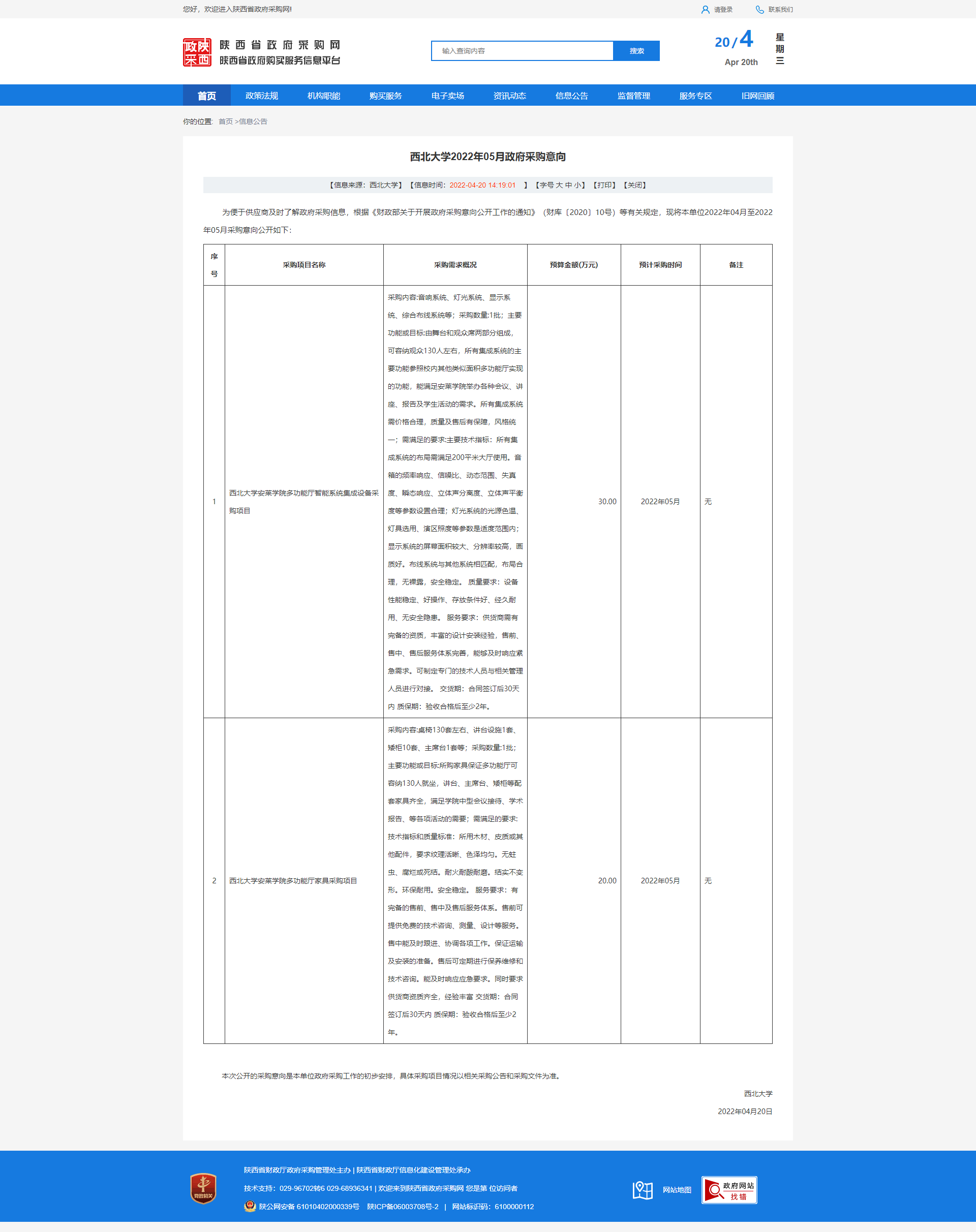 8868体育登录2022年05月政府采购意向 作者: 编辑:薛利娟 时间:2022-04-20 原公告链接:http://www.ccgp-shaanxi.gov.cn/freecms/site/shaanxi/ggxx/info/2022/8a69c6fa803f5d71018044f8ef4371e6.html?noticeType=59¬iceId=ec2f07d2-c071-11ec-9a8e-08c0eb20c666