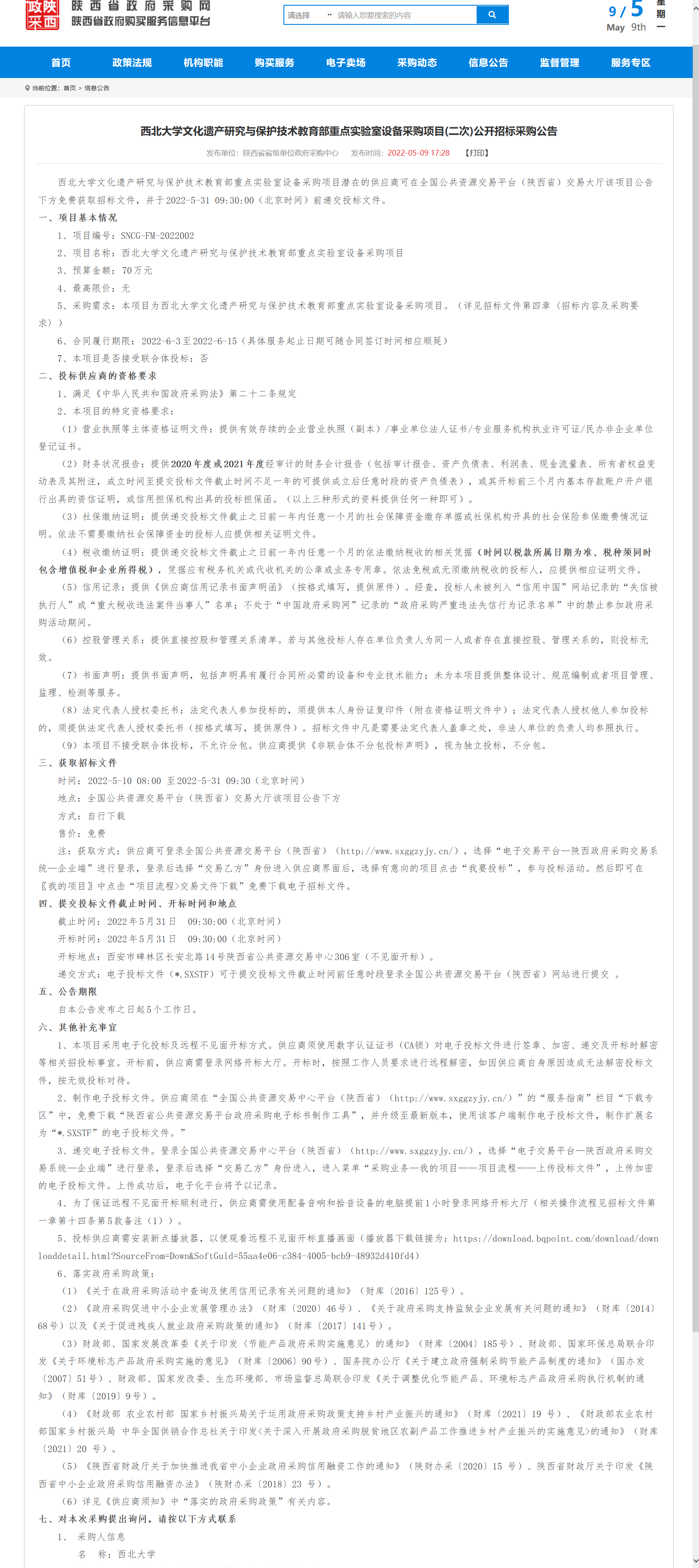 8868体育登录文化遗产研究与保护技术教育部重点实验室设备采购项目(二次)公开招标采购公告 作者: 编辑:薛利娟 时间:2022-05-09 原公告链接:http://113.200.80.230/notice/noticeDetail.do?noticeguid=8a85be387f91f0bf0180a8225bed003f