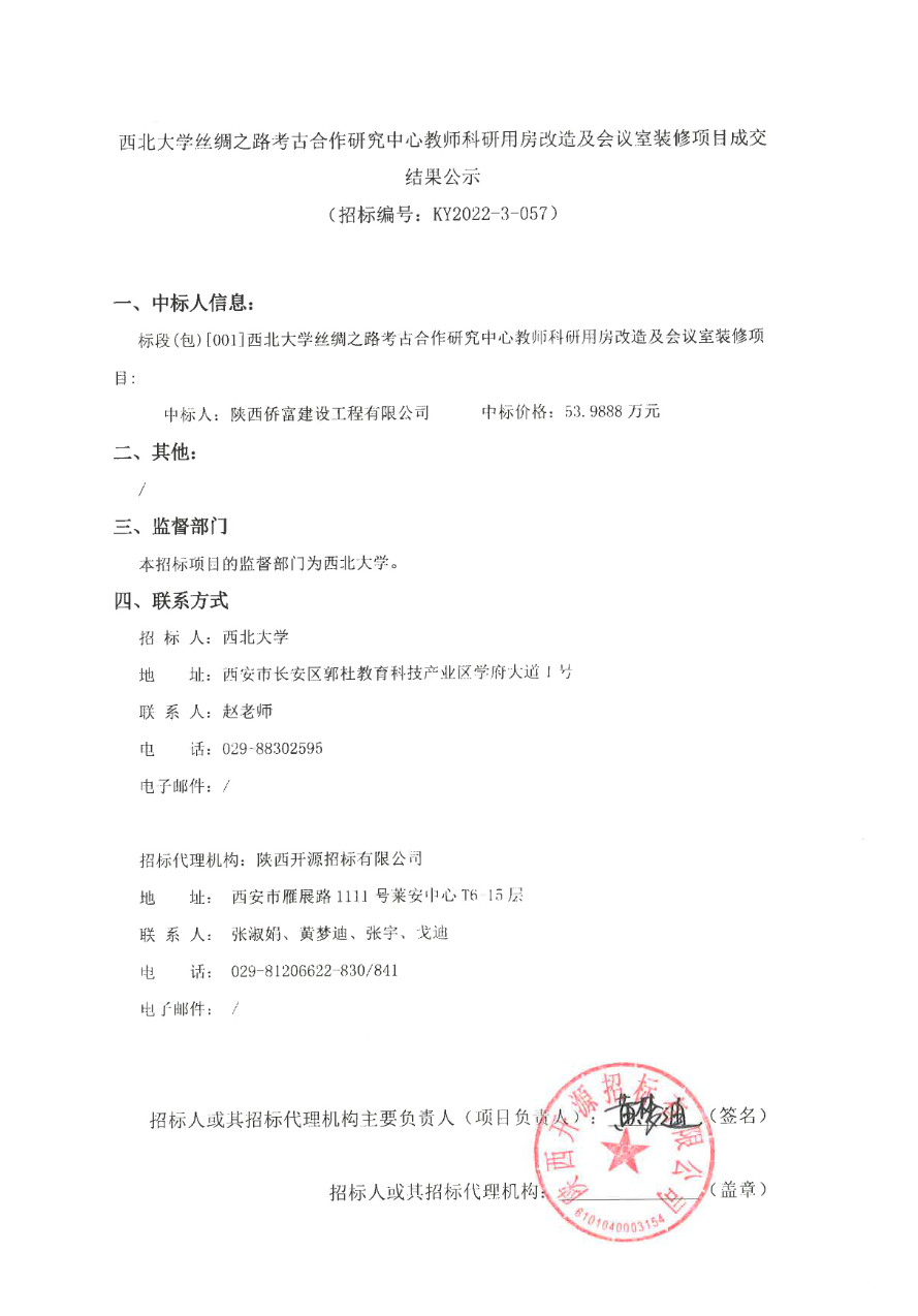 8868体育登录丝绸之路考古合作研究中心教师科研用房改造及会议室装修项目成交结果公示