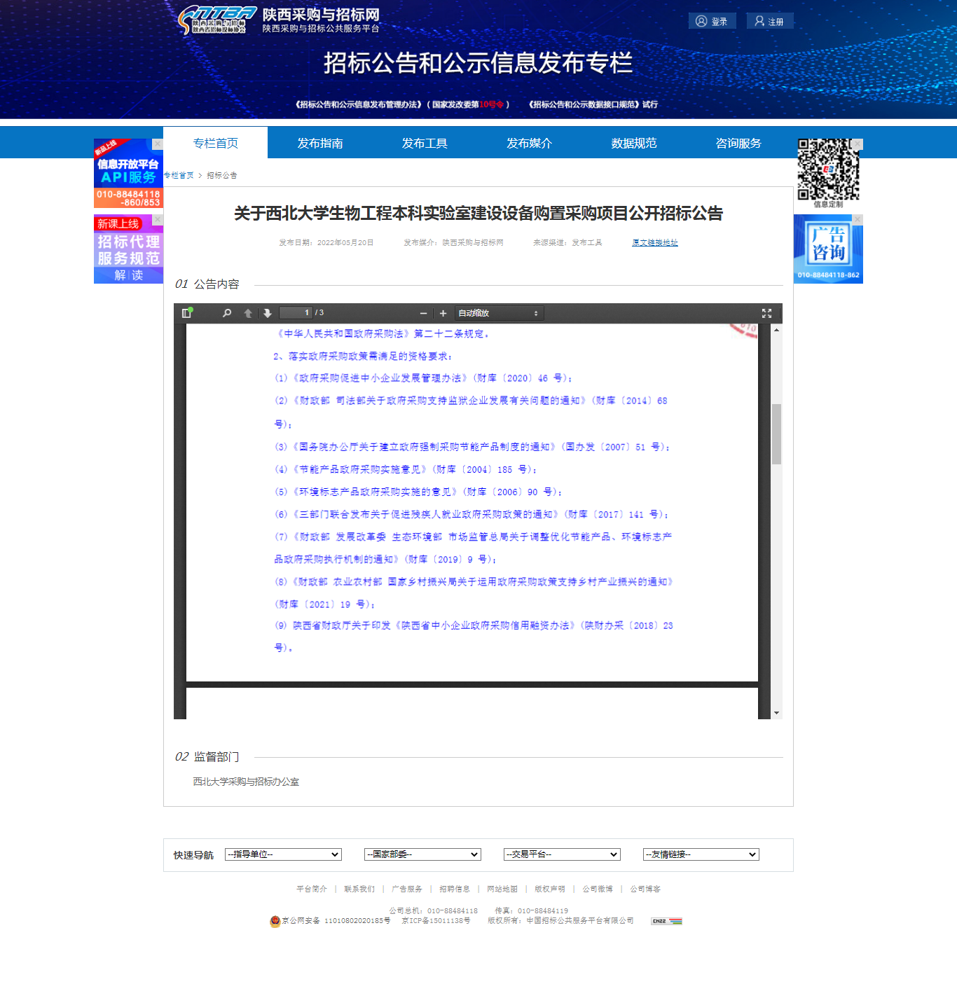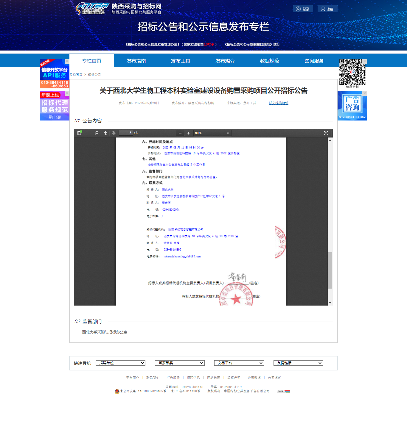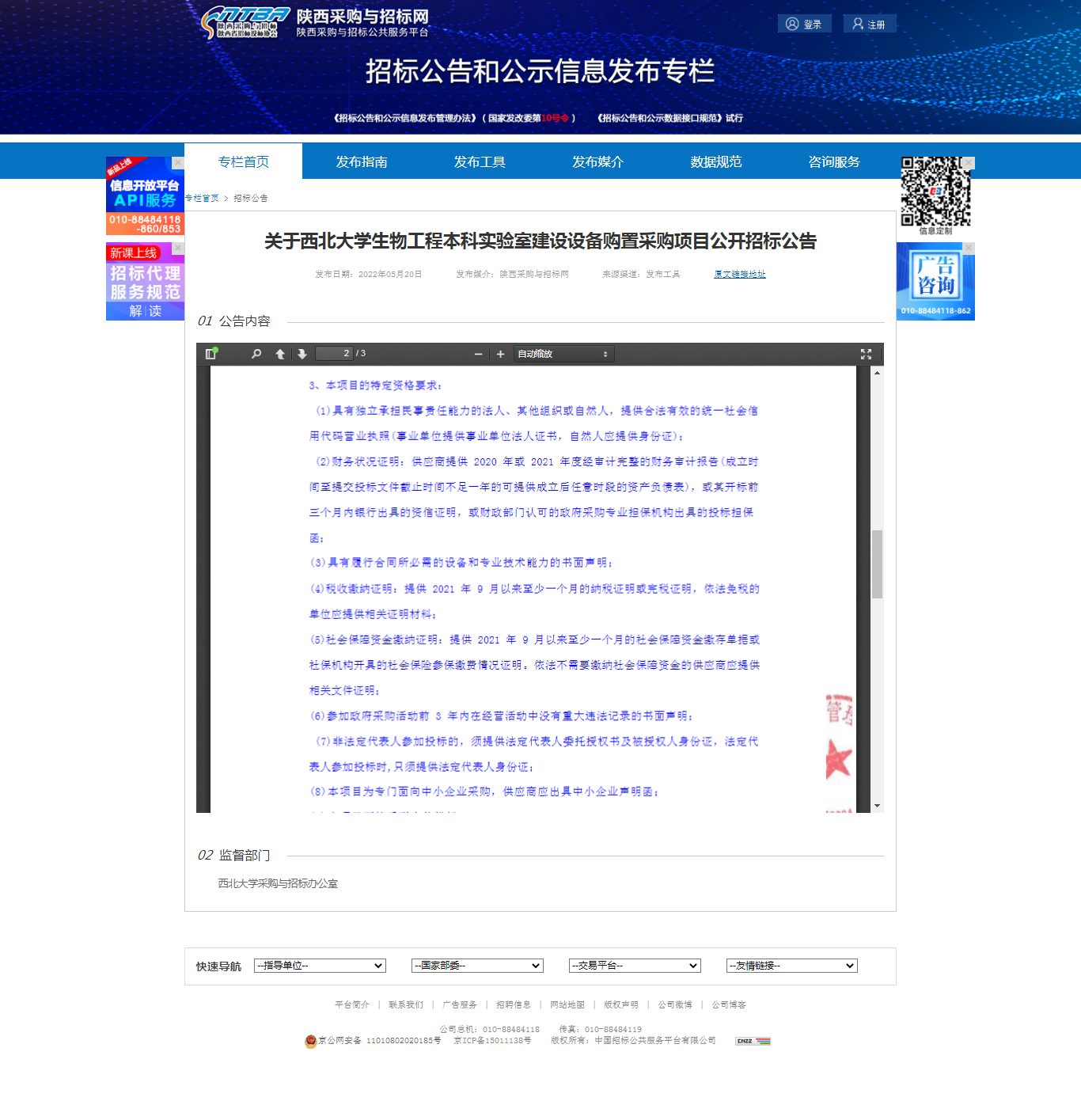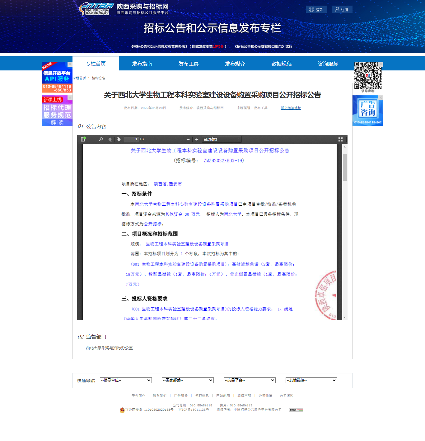 8868体育登录生物工程本科实验室建设设备购置采购项目公开招标公告 作者: 编辑:薛利娟 时间:2022-05-20 原公告链接:http://bulletin.sntba.com/biddingBulletin/2022-05-20/423538.html