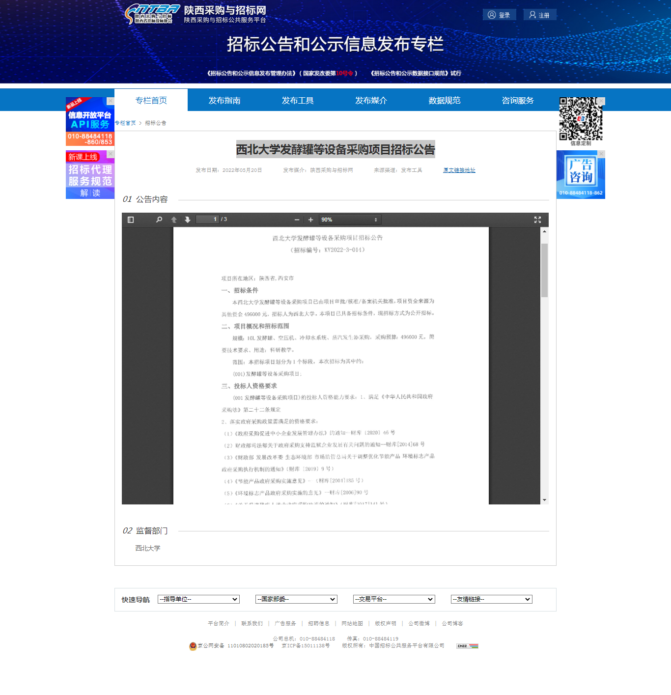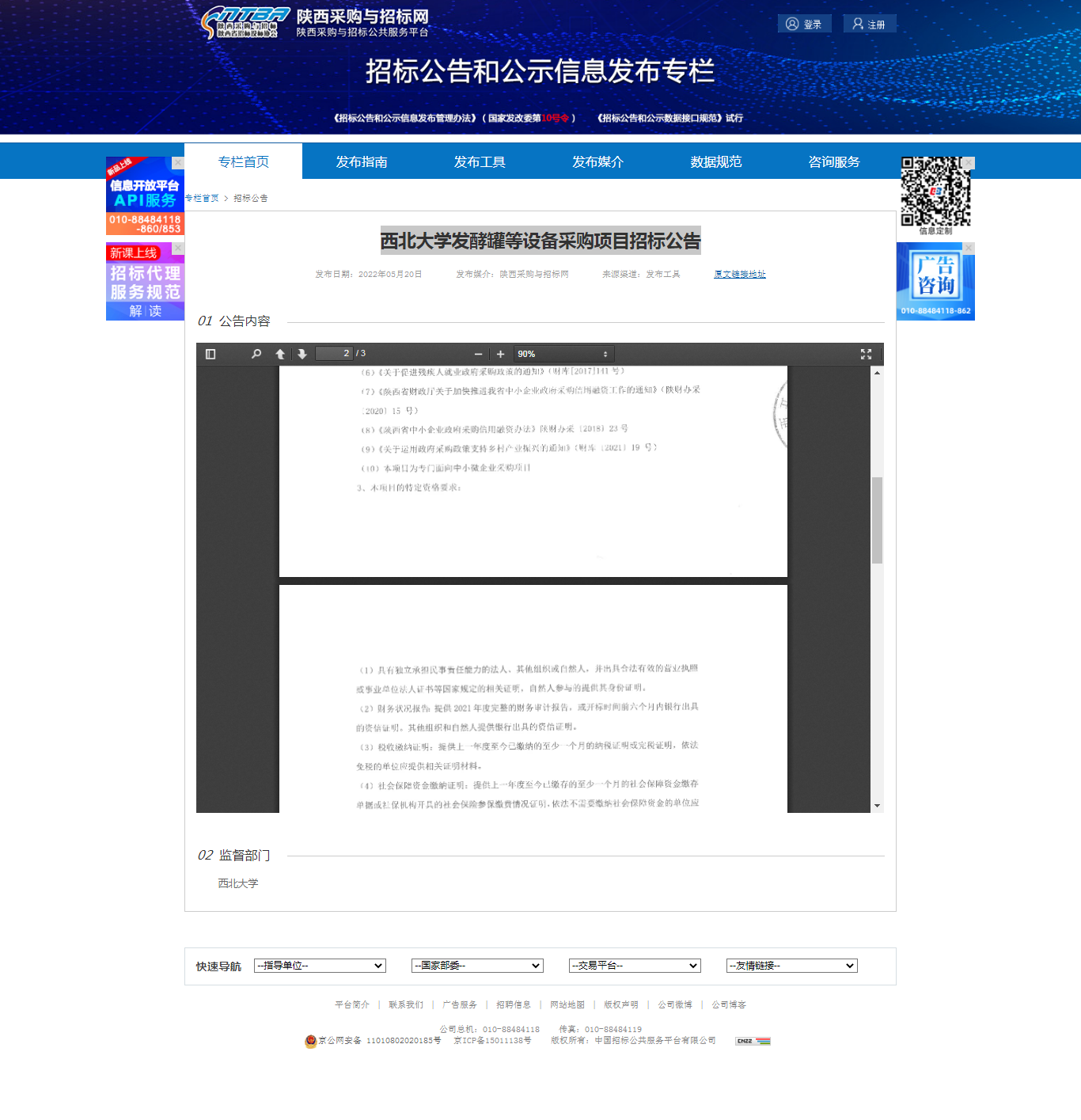 8868体育登录发酵罐等设备采购项目招标公告 作者: 编辑:薛利娟 时间:2022-05-20 原公告链接:http://bulletin.sntba.com/biddingBulletin/2022-05-20/423713.html