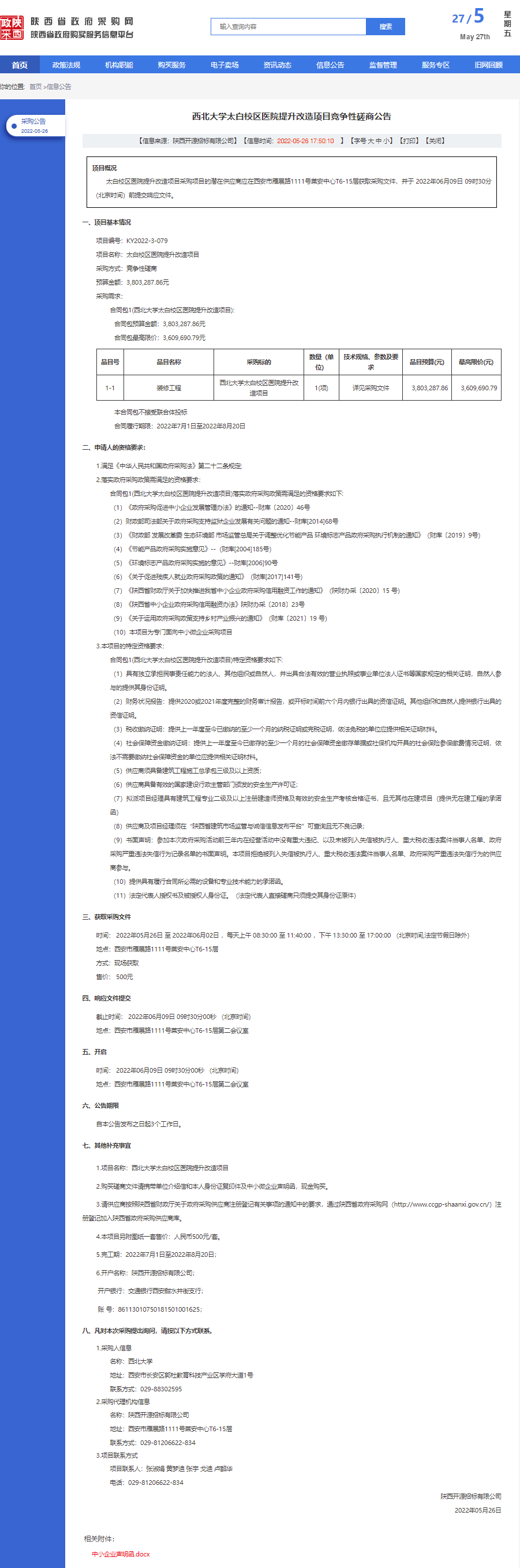 8868体育登录太白校区医院提升改造项目竞争性磋商公告