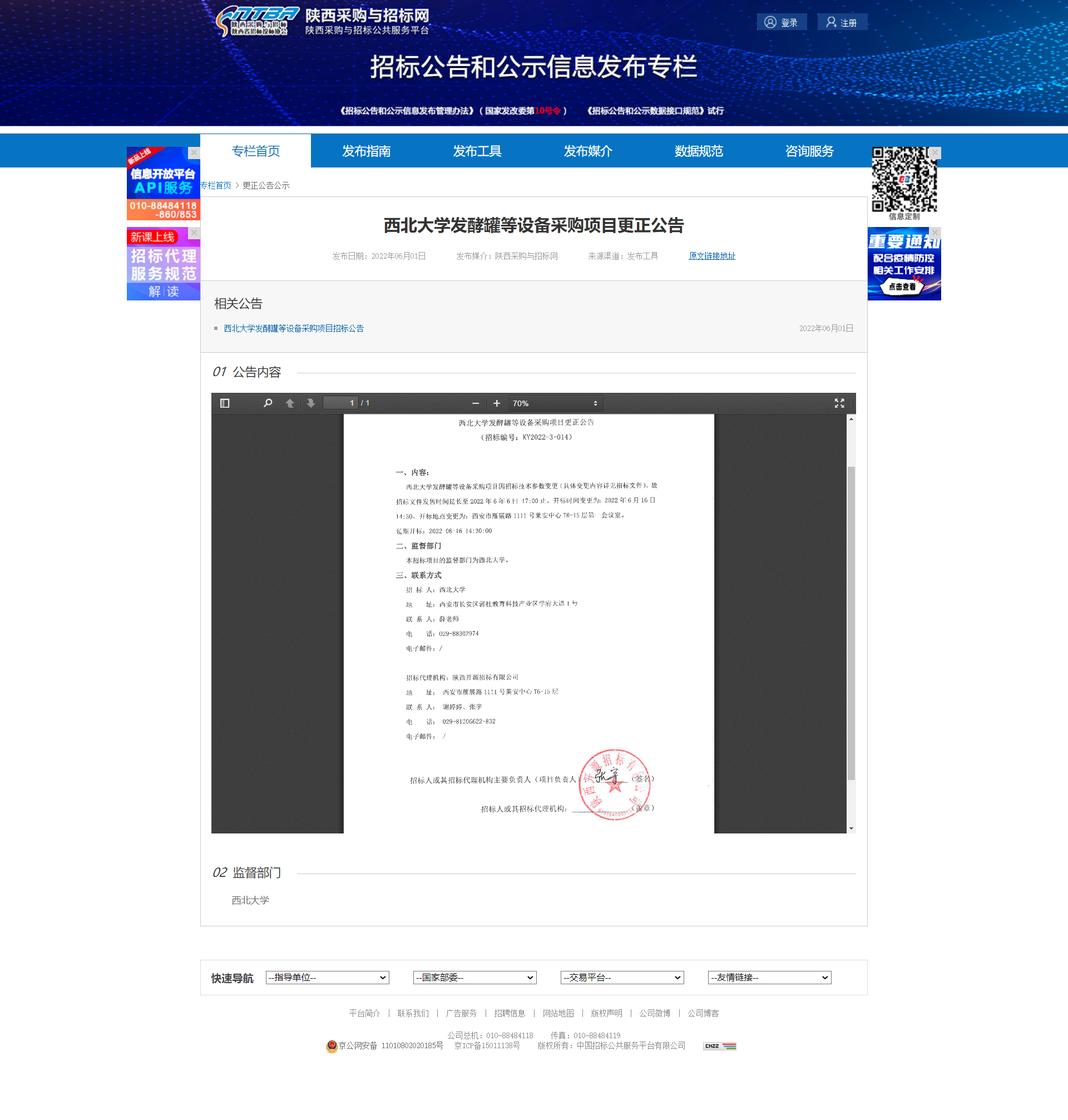 8868体育登录发酵罐等设备采购项目更正公告 作者: 编辑:薛利娟 时间:2022-06-01 原公告链接:http://bulletin.sntba.com/changeBulletin/2022-06-01/428102.html