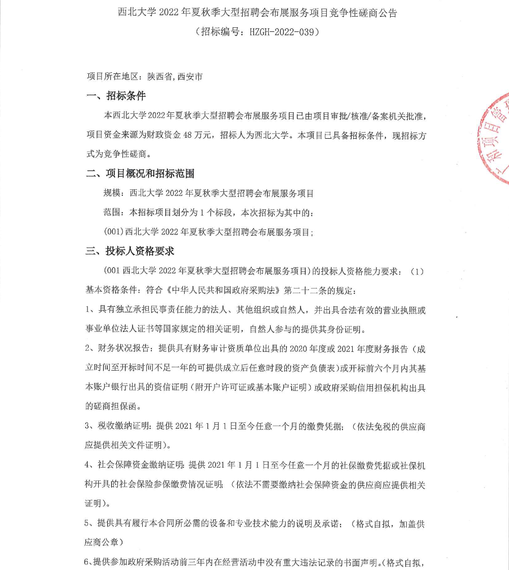 8868体育登录2022年夏秋季大型招聘会布展服务项目竞争性磋商公告