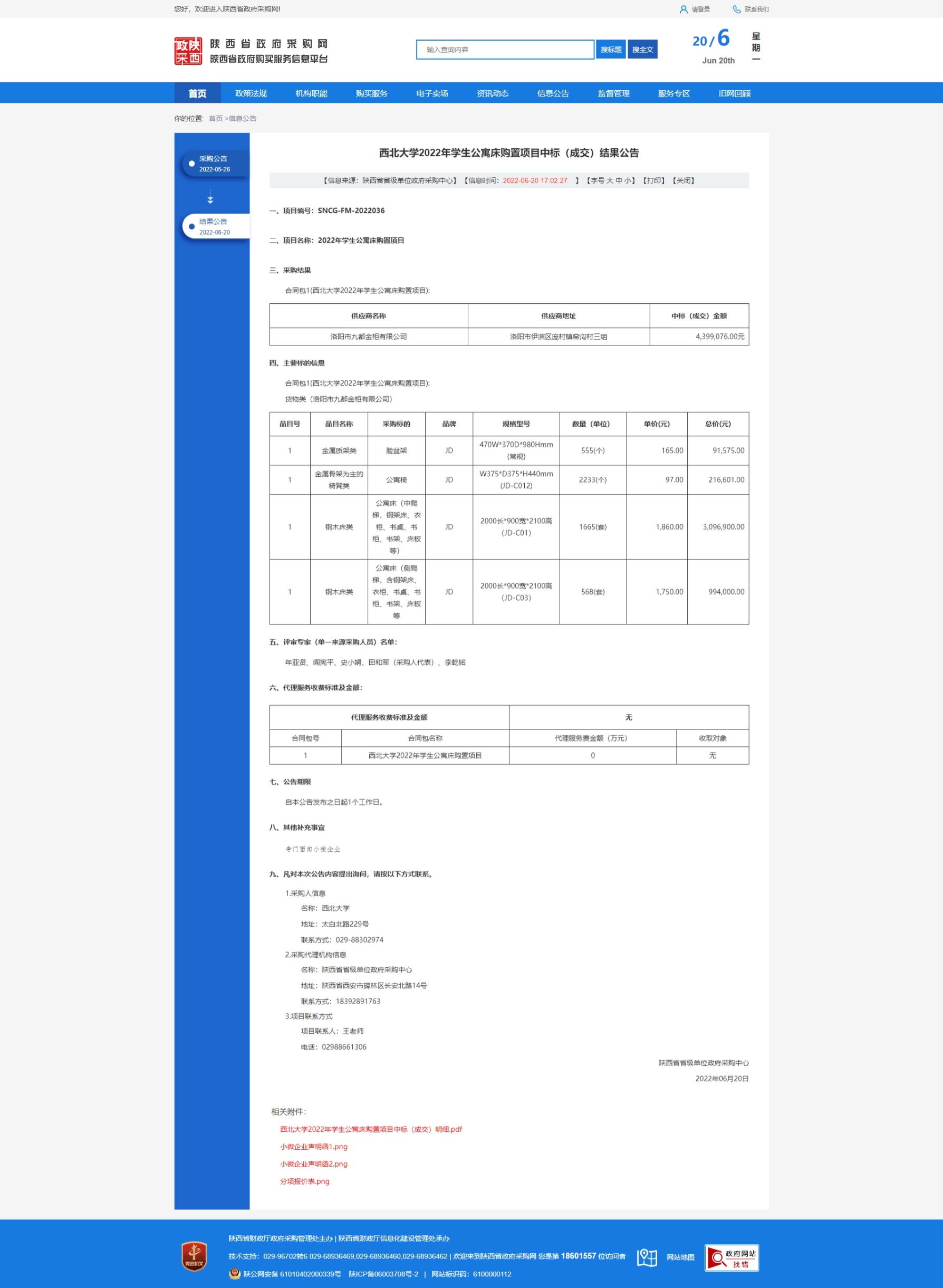 8868体育登录2022年学生公寓床购置项目中标(成交)结果公告 作者: 编辑:薛利娟 时间:2022-06-20 原公告链接:http://www.ccgp-shaanxi.gov.cn/freecms/site/shaanxi/ggxx/info/2022/8a69c8f3812f549f01817fdf5cbb0b94.html?noticeType=001021¬iceId=04d8eb59-f078-11ec-9a8e-08c0eb20c666