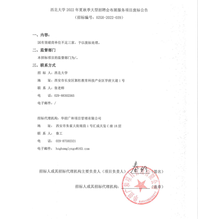 关于8868体育登录2022年夏秋季大型招聘会布展服务项目废标公告