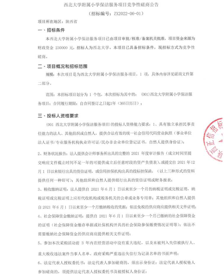 8868体育登录附属小学保洁服务项目竞争性磋商公告