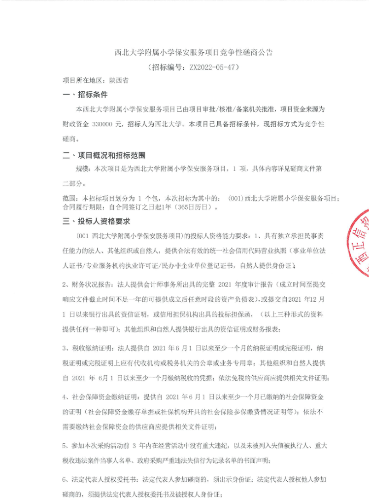8868体育登录附属小学保安服务项目竞争性磋商公告