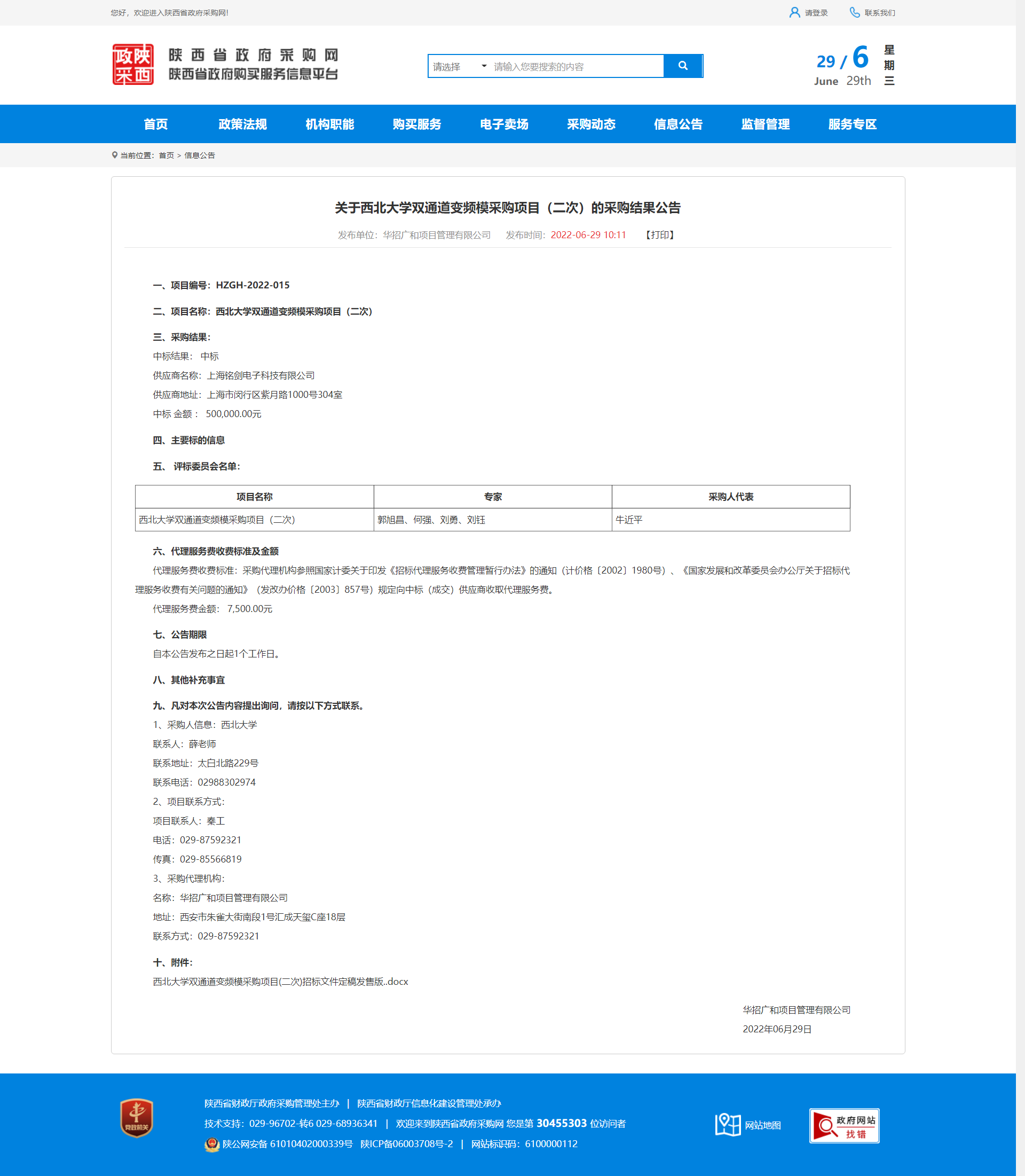 关于8868体育登录双通道变频模采购项目(二次)的采购结果公告 作者: 编辑:采购与招标办公室 时间:2022-06-29 原公告链接:http://113.200.80.230/notice/noticeDetail.do?noticeguid=8a85be3480b2a89e0181ad2d18a45a12
