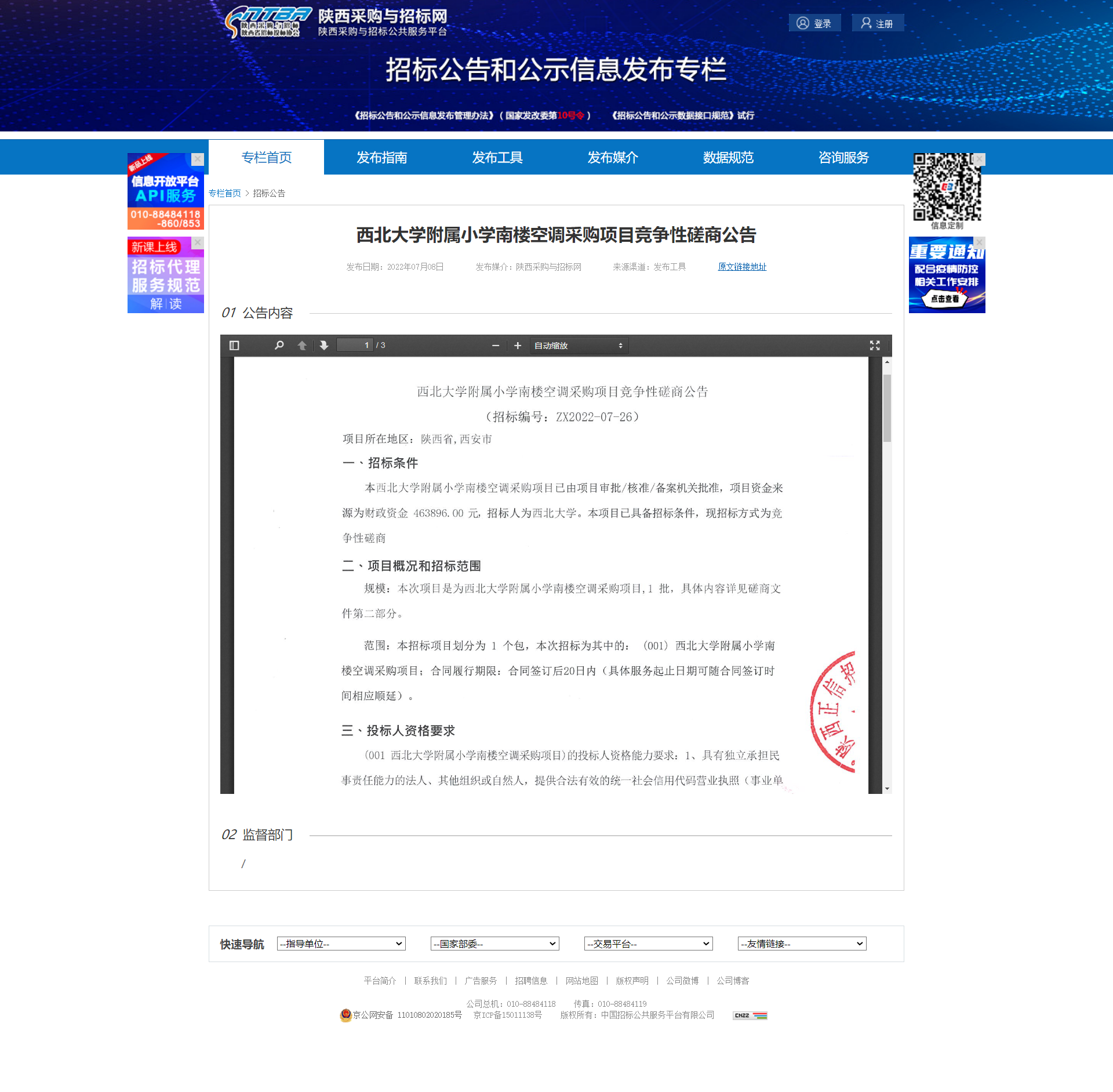 8868体育登录附属小学南楼空调采购项目竞争性磋商公告 作者: 编辑:薛利娟 时间:2022-07-08 原公告链接:http://bulletin.sntba.com/biddingBulletin/2022-07-08/445113.html