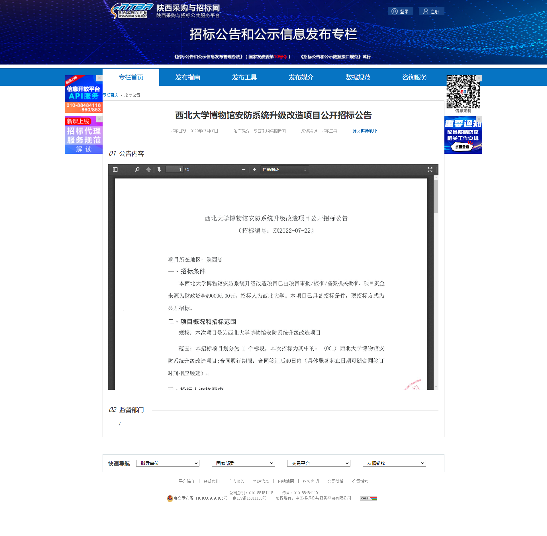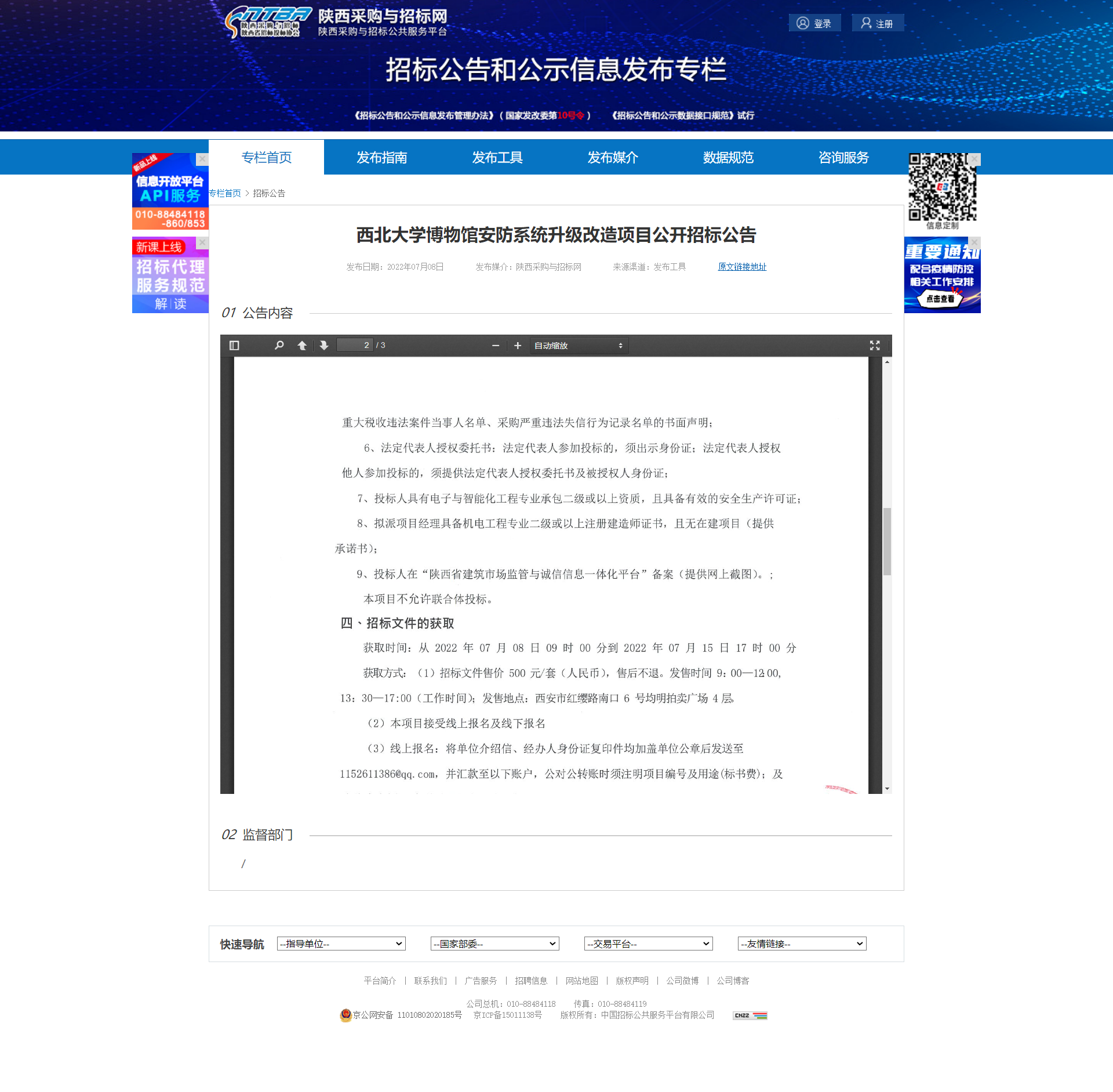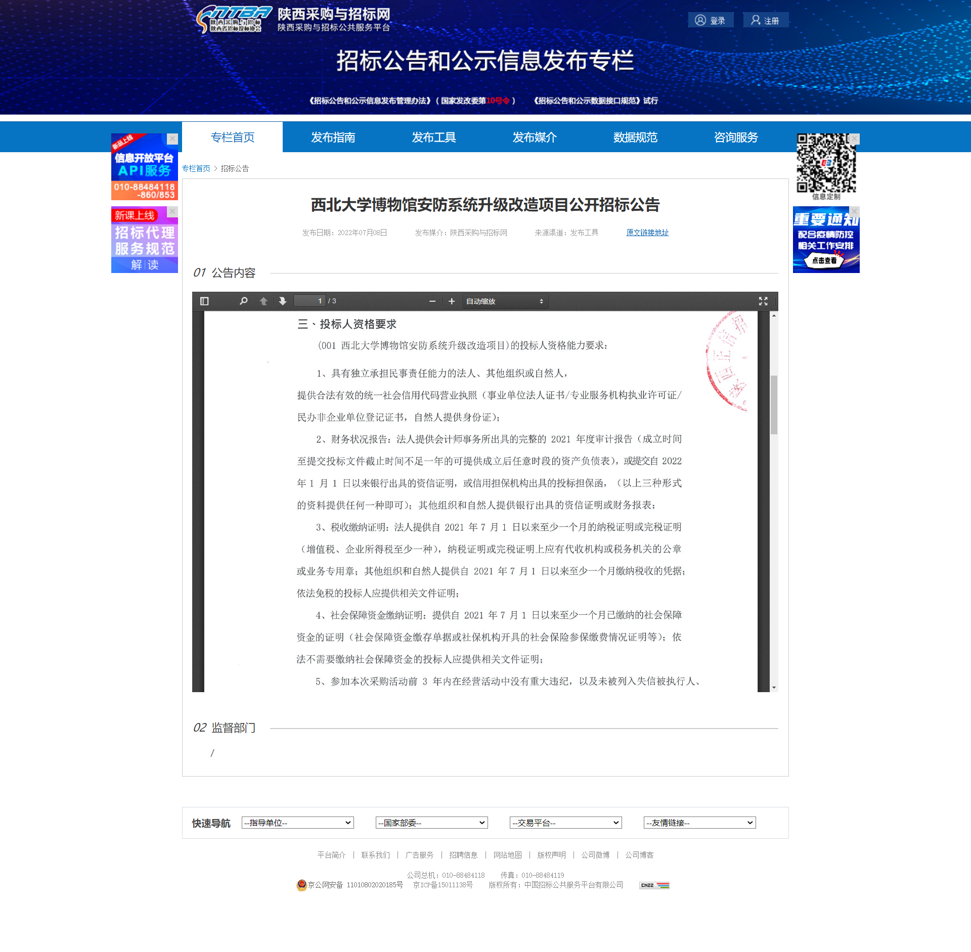 8868体育登录博物馆安防系统升级改造项目公开招标公告 作者: 编辑:薛利娟 时间:2022-07-08 原公告链接:http://bulletin.sntba.com/biddingBulletin/2022-07-08/445128.html