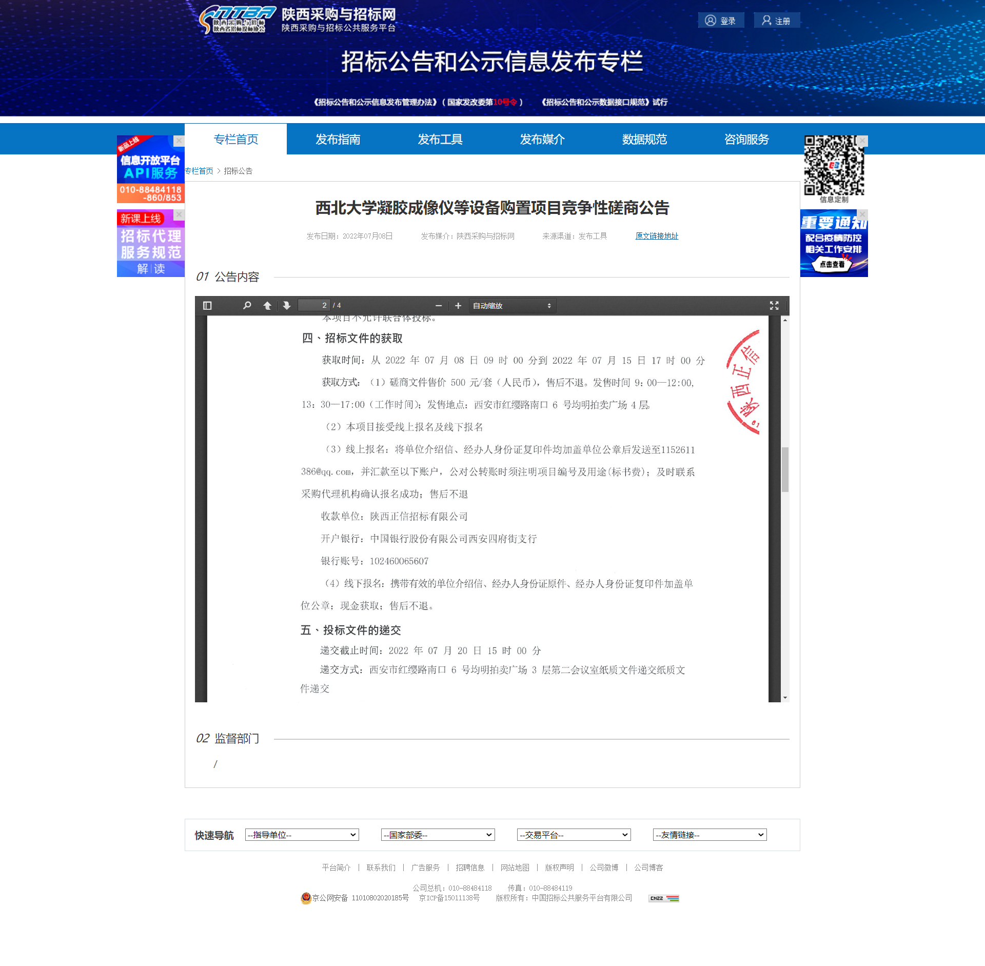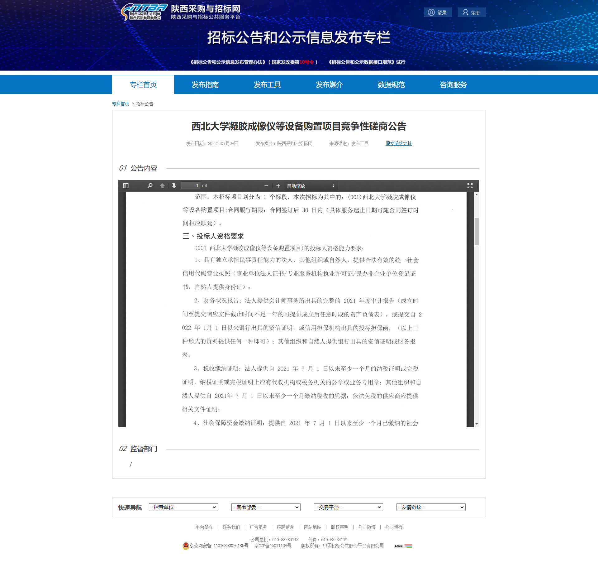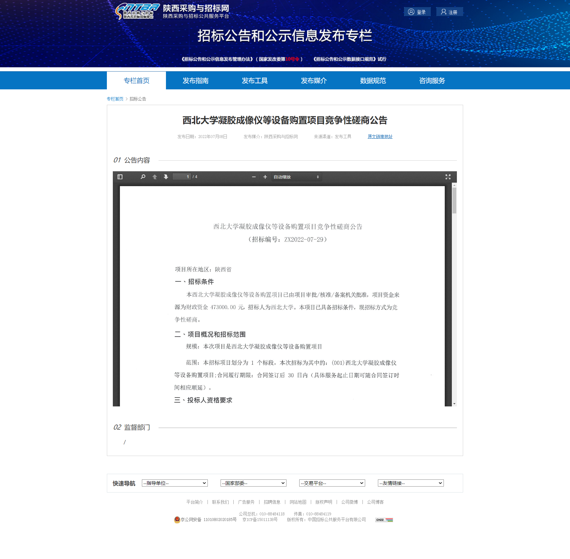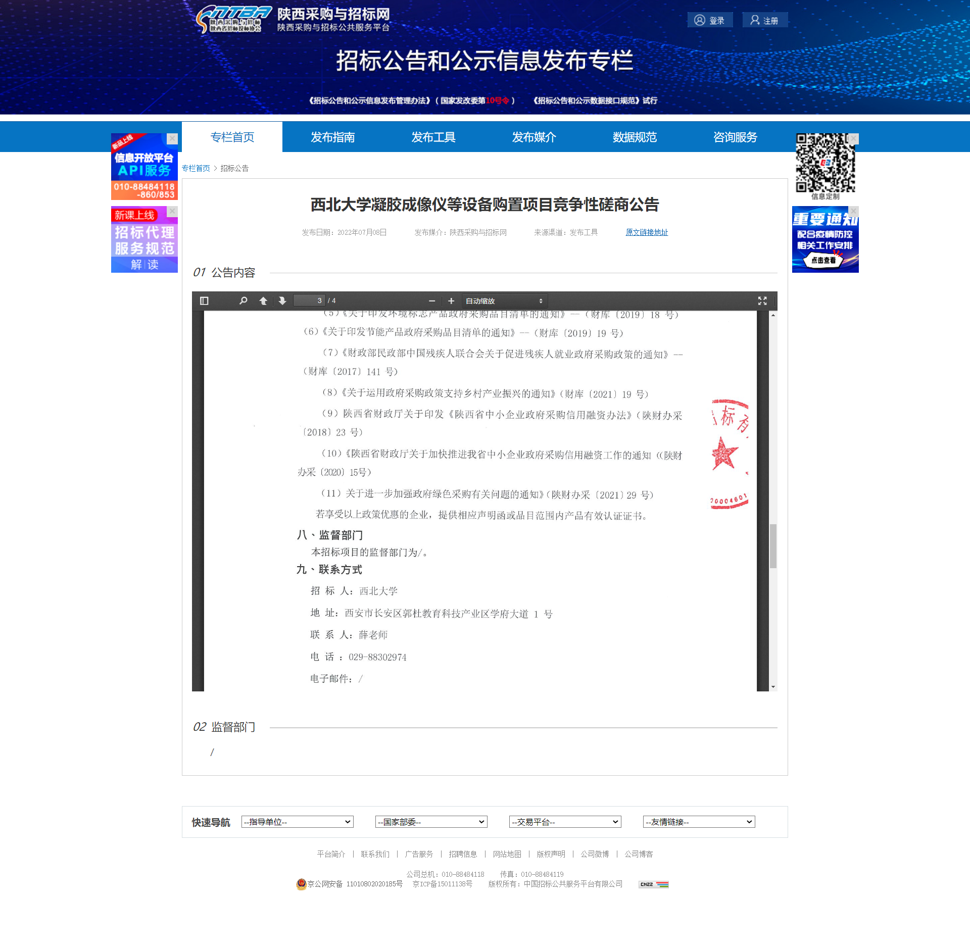 8868体育登录凝胶成像仪等设备购置项目竞争性磋商公告 作者: 编辑:薛利娟 时间:2022-07-08 原公告链接:http://bulletin.sntba.com/biddingBulletin/2022-07-08/445120.html