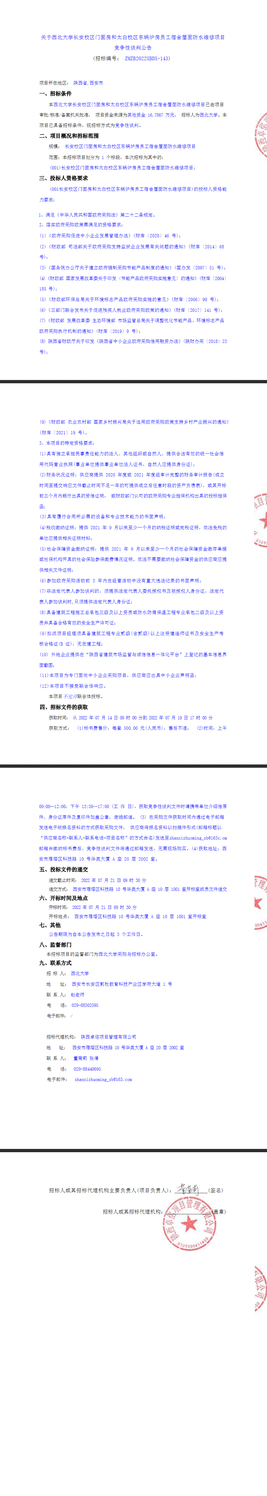 关于8868体育登录长安校区门面房和太白校区东锅炉房员工宿舍屋面防水维修项目竞争性谈判公告