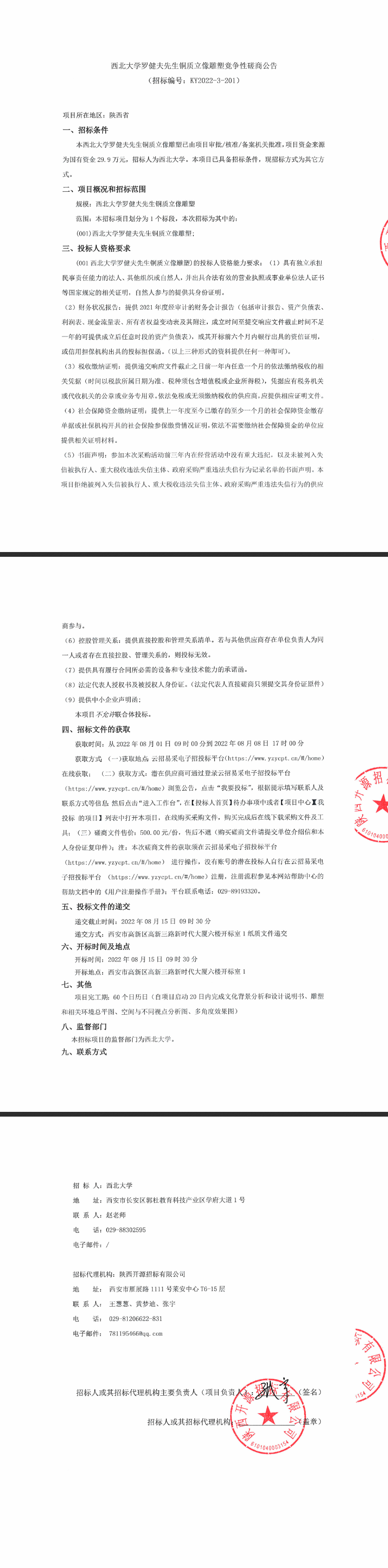 8868体育登录罗健夫先生铜质立像雕塑竞争性磋商公告