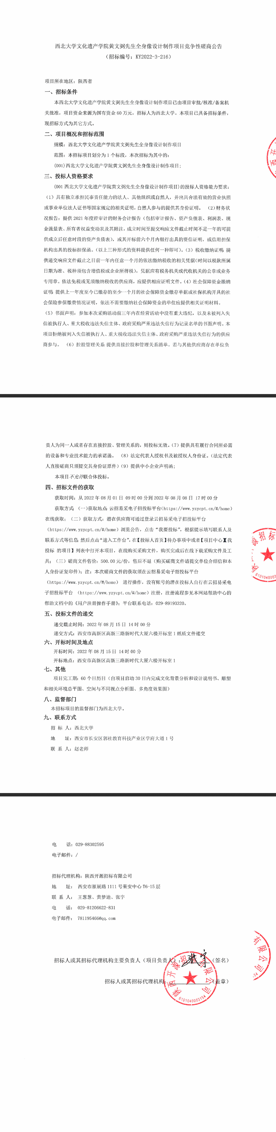 8868体育登录文化遗产学院黄文弼先生全身像设计制作项目竞争性磋商公告