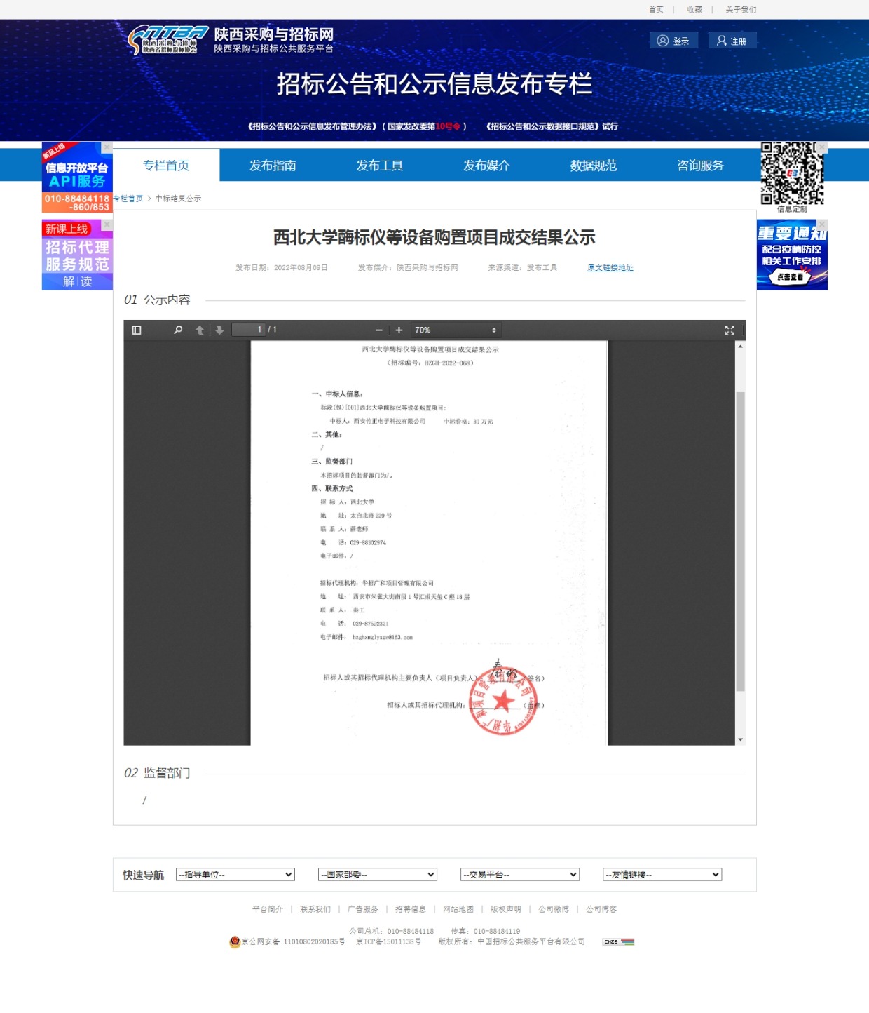 8868体育登录酶标仪等设备购置项目成交结果公示 作者: 编辑:采购与招标办公室 时间:2022-08-09 原公告链接:http://bulletin.sntba.com/resultBulletin/2022-08-09/459046.html