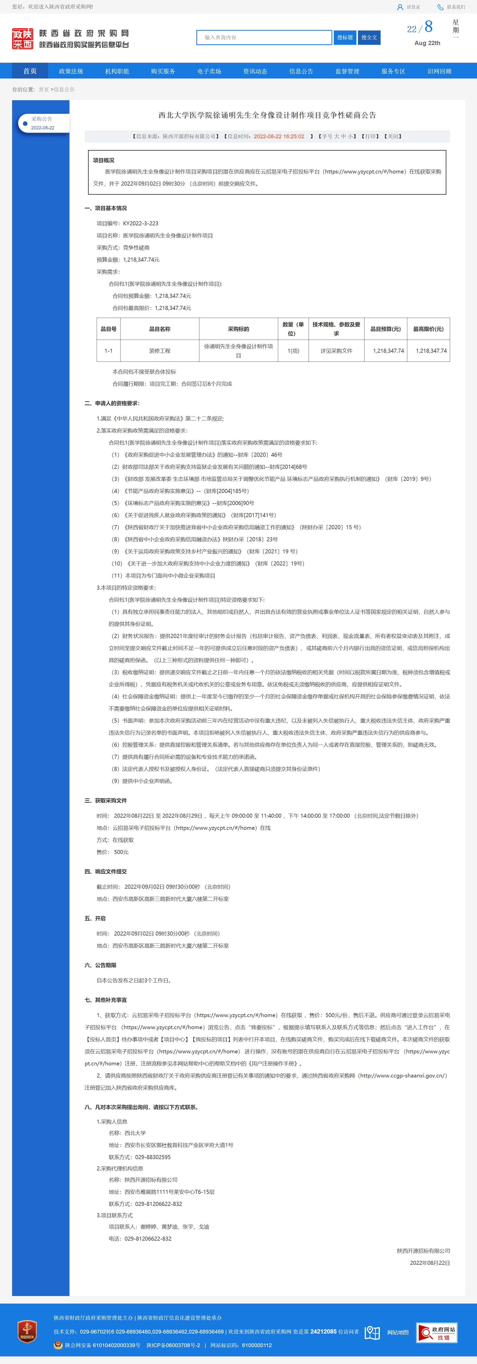 8868体育登录医学院徐诵明先生全身像设计制作项目竞争性磋商公告