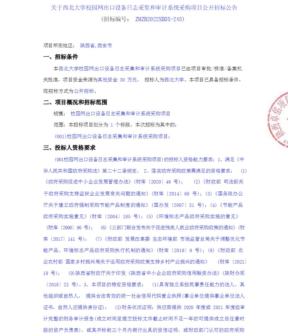 关于8868体育登录校园网出口设备日志采集和审计系统采购项目公开招标公告