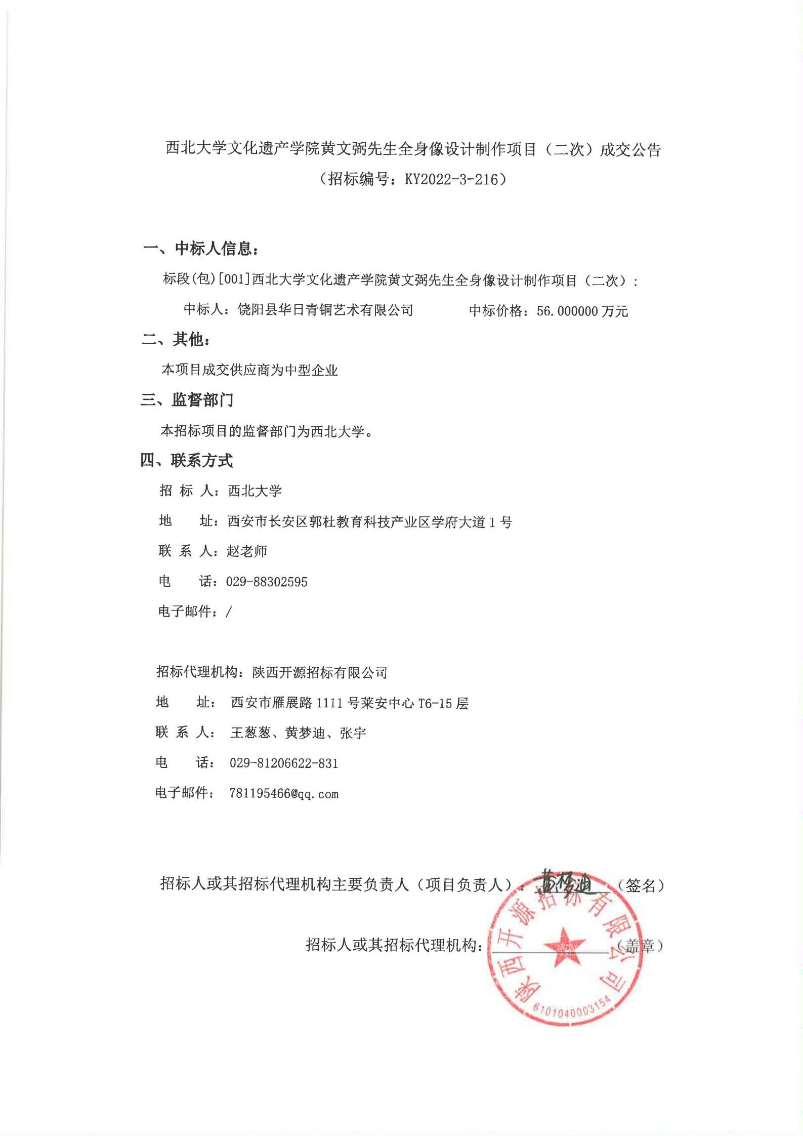 8868体育登录文化遗产学院黄文弼先生全身像设计制作项目(二次)成交公告