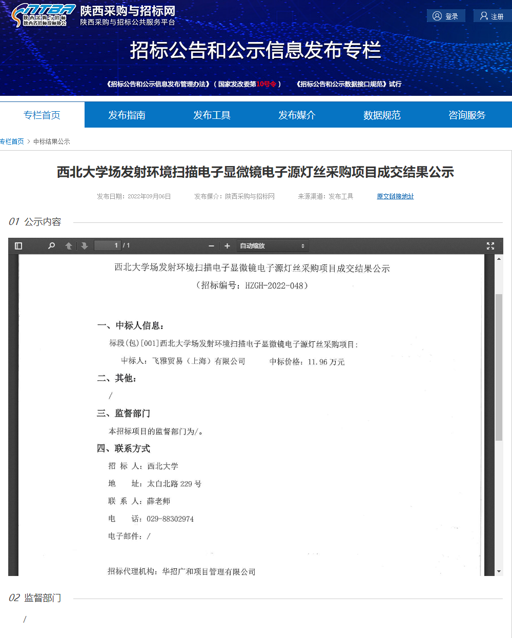 8868体育登录场发射环境扫描电子显微镜电子源灯丝采购项目成交结果公示 作者: 编辑:采购与招标办公室 时间:2022-09-06 原公告链接:http://bulletin.sntba.com/resultBulletin/2022-09-06/471051.html
