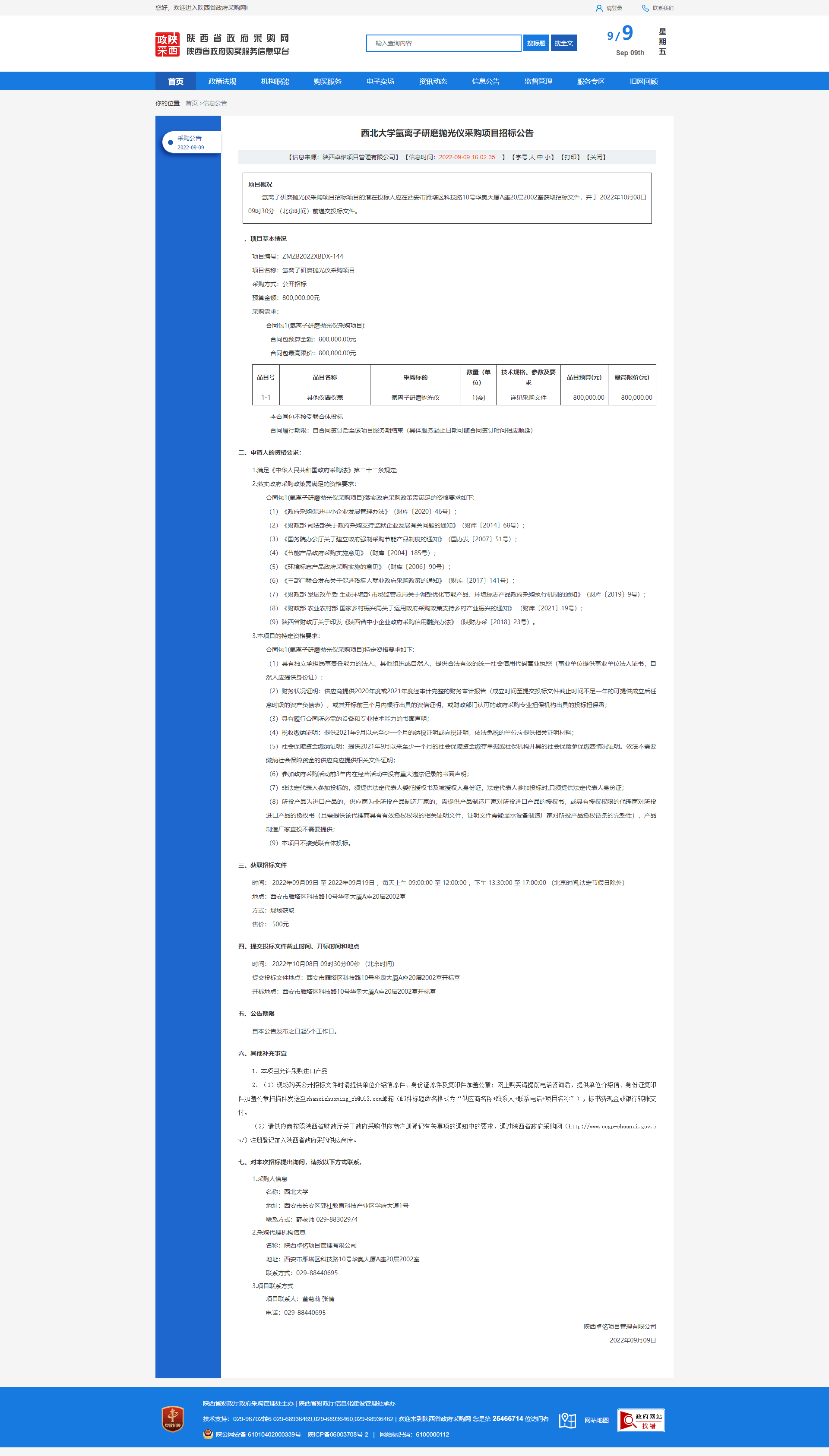 8868体育登录氩离子研磨抛光仪采购项目招标公告 作者: 编辑:8868体育登录氩离子研磨抛光仪采购项目招标公告 时间:2022-09-09 原公告链接:http://www.ccgp-shaanxi.gov.cn/freecms/site/shaanxi/ggxx/info/2022/8a69c59682a320a40183212e37967d5d.html?noticeType=001011¬iceId=42cd3b7b-3016-11ed-9a8e-08c0eb20c666