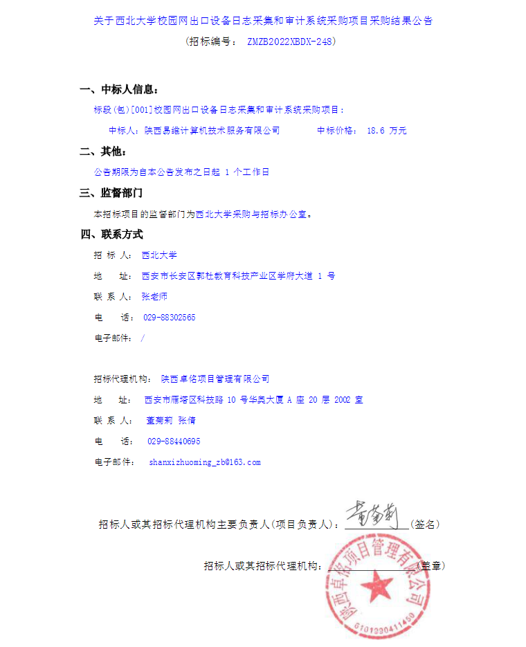 关于8868体育登录校园网出口设备日志采集和审计系统采购项目采购结果公告