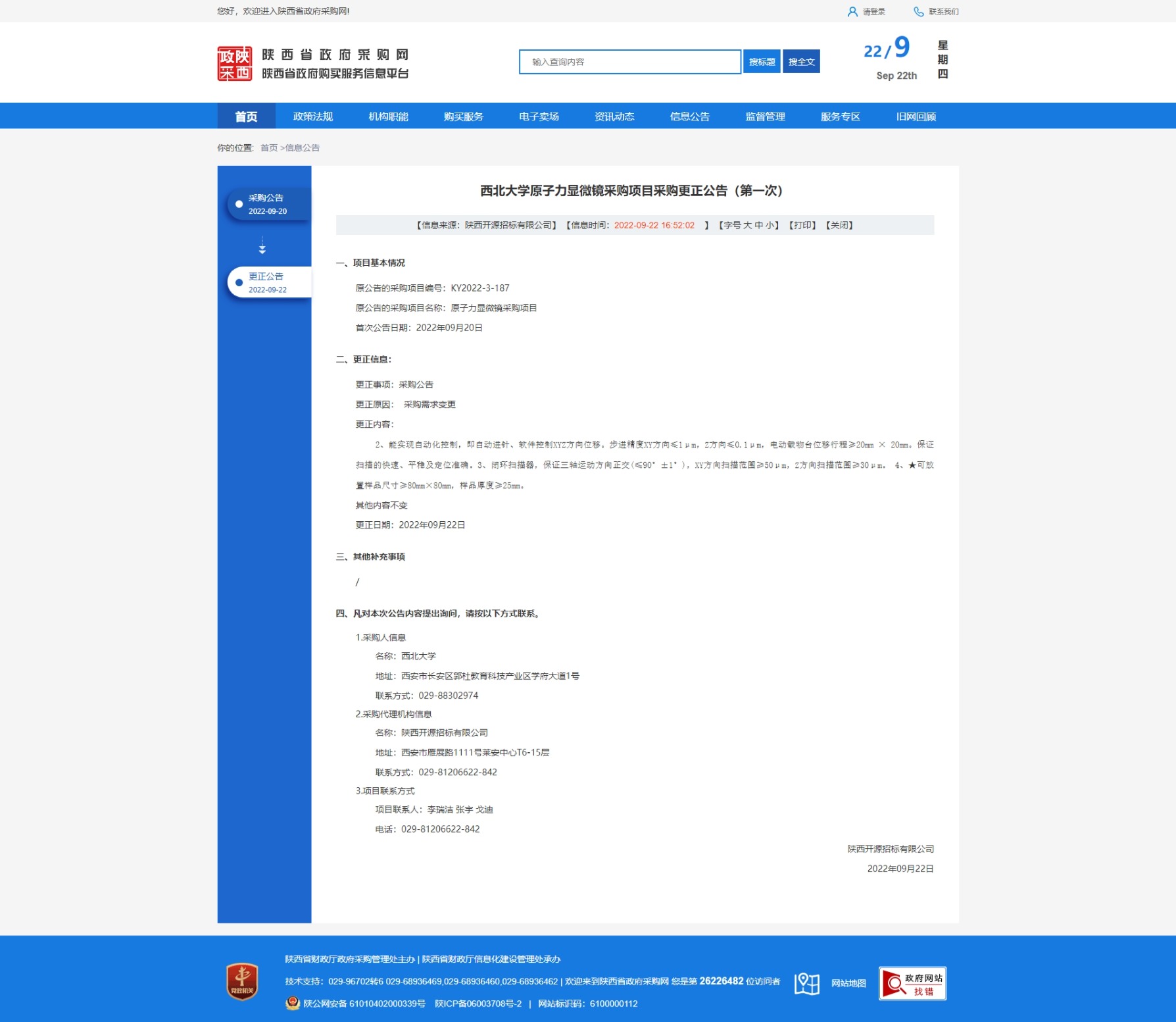 8868体育登录原子力显微镜采购项目采购更正公告 作者: 编辑:采购与招标办公室 时间:2022-09-22 原公告链接:http://www.ccgp-shaanxi.gov.cn/freecms/site/shaanxi/ggxx/info/2022/8a69c59682a320a40183643e1ba02b5a.html?noticeType=001031¬iceId=5a0f225c-3a54-11ed-9a8e-08c0eb20c666