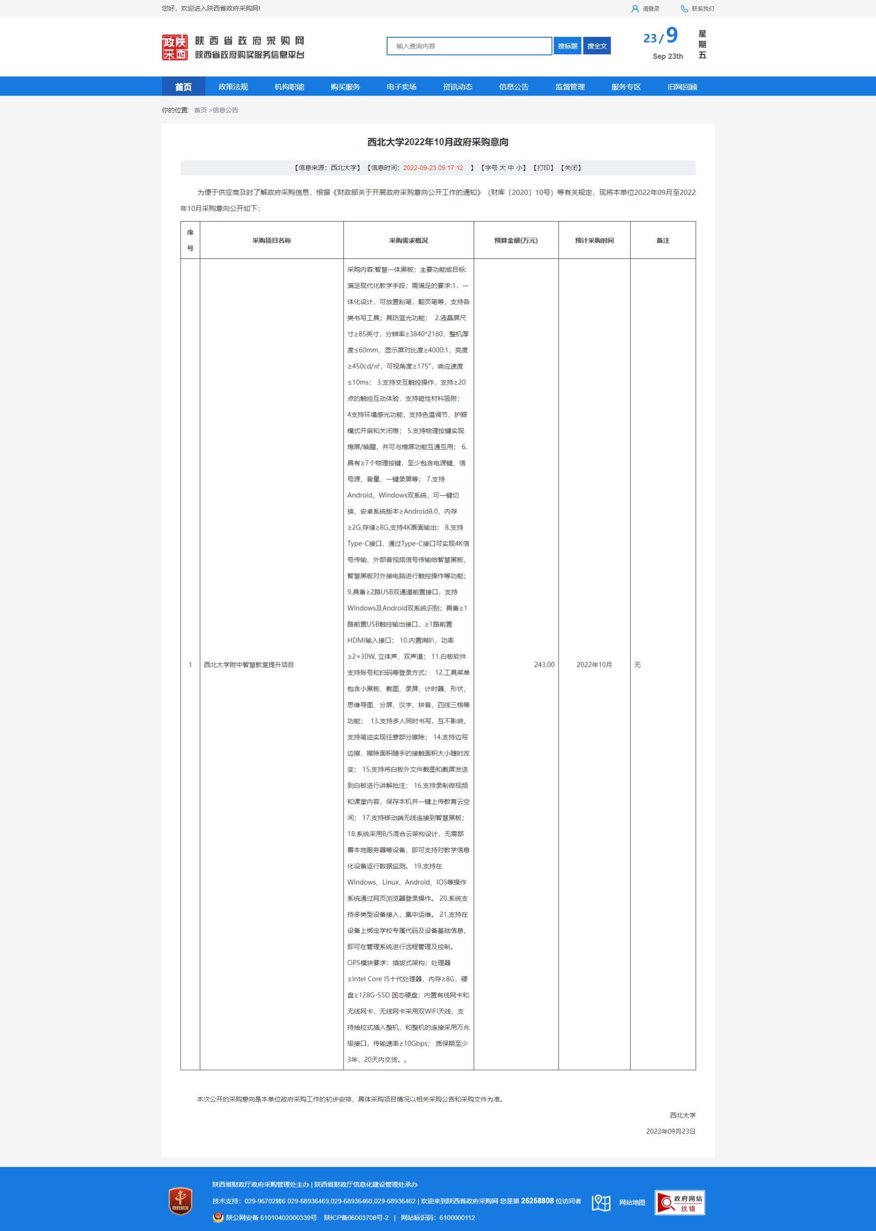 8868体育登录2022年10月政府采购意向 作者: 编辑:采购与招标办公室 时间:2022-09-23 原公告链接:http://www.ccgp-shaanxi.gov.cn/freecms/site/shaanxi/ggxx/info/2022/8a69c8478367db9a018367e5fec9035c.html?noticeType=59¬iceId=f95e3cc6-3add-11ed-9a8e-08c0eb20c666