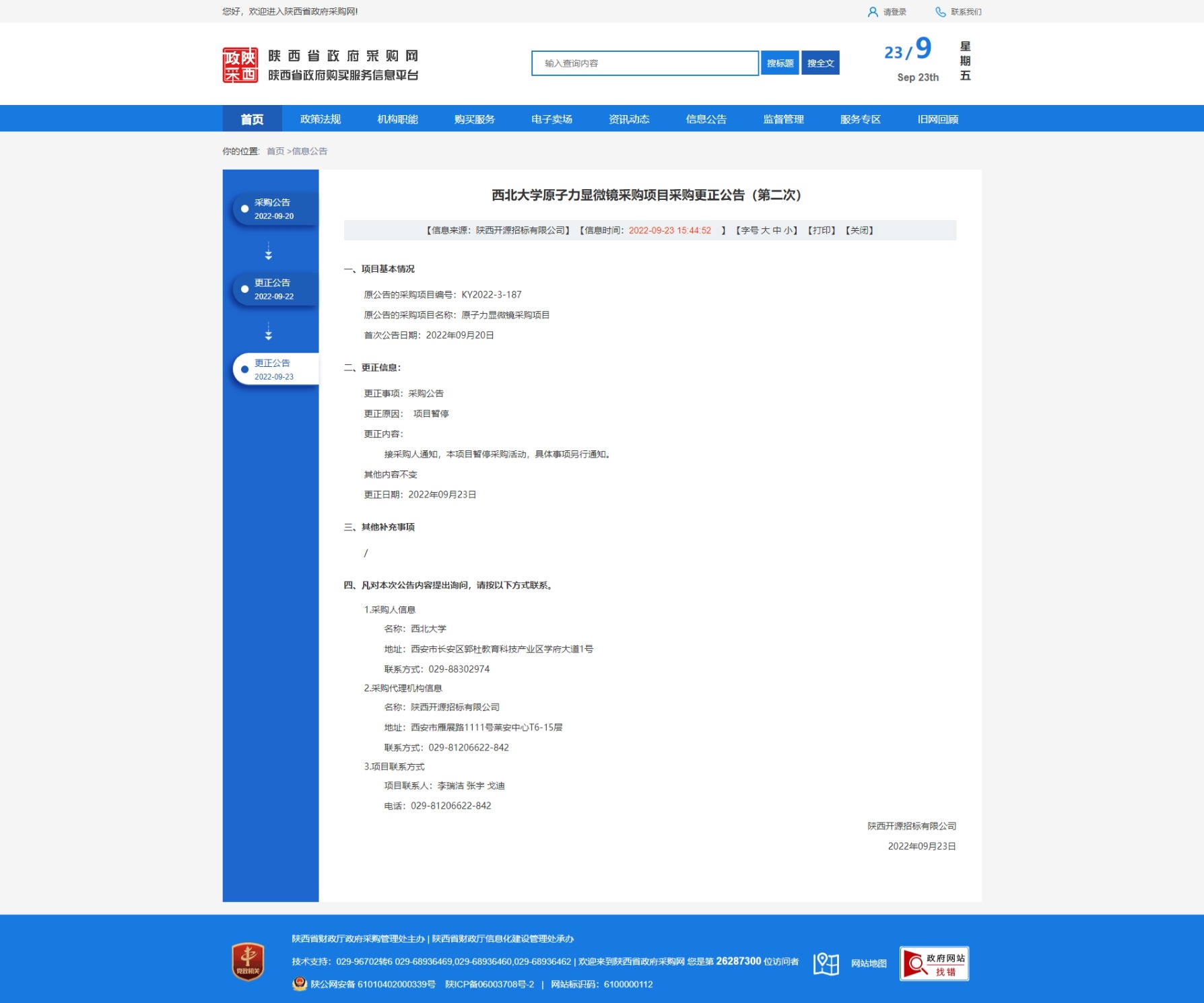 8868体育登录原子力显微镜采购项目采购更正公告(第二次) 作者: 编辑:采购与招标办公室 时间:2022-09-23 原公告链接:http://www.ccgp-shaanxi.gov.cn/freecms/site/shaanxi/ggxx/info/2022/8a69c78482a320a201836942a02842b0.html?noticeType=001031¬iceId=22ff8d4b-3b14-11ed-9a8e-08c0eb20c666