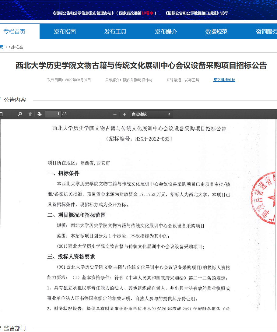 8868体育登录历史学院文物古籍与传统文化展训中心会议设备采购项目招标公告 作者: 编辑:8868体育登录历史学院文物古籍与传统文化展训中心会议设备采购项目招标公告 时间:2022-09-29 原公告链接:http://bulletin.sntba.com/biddingBulletin/2022-09-29/480759.html