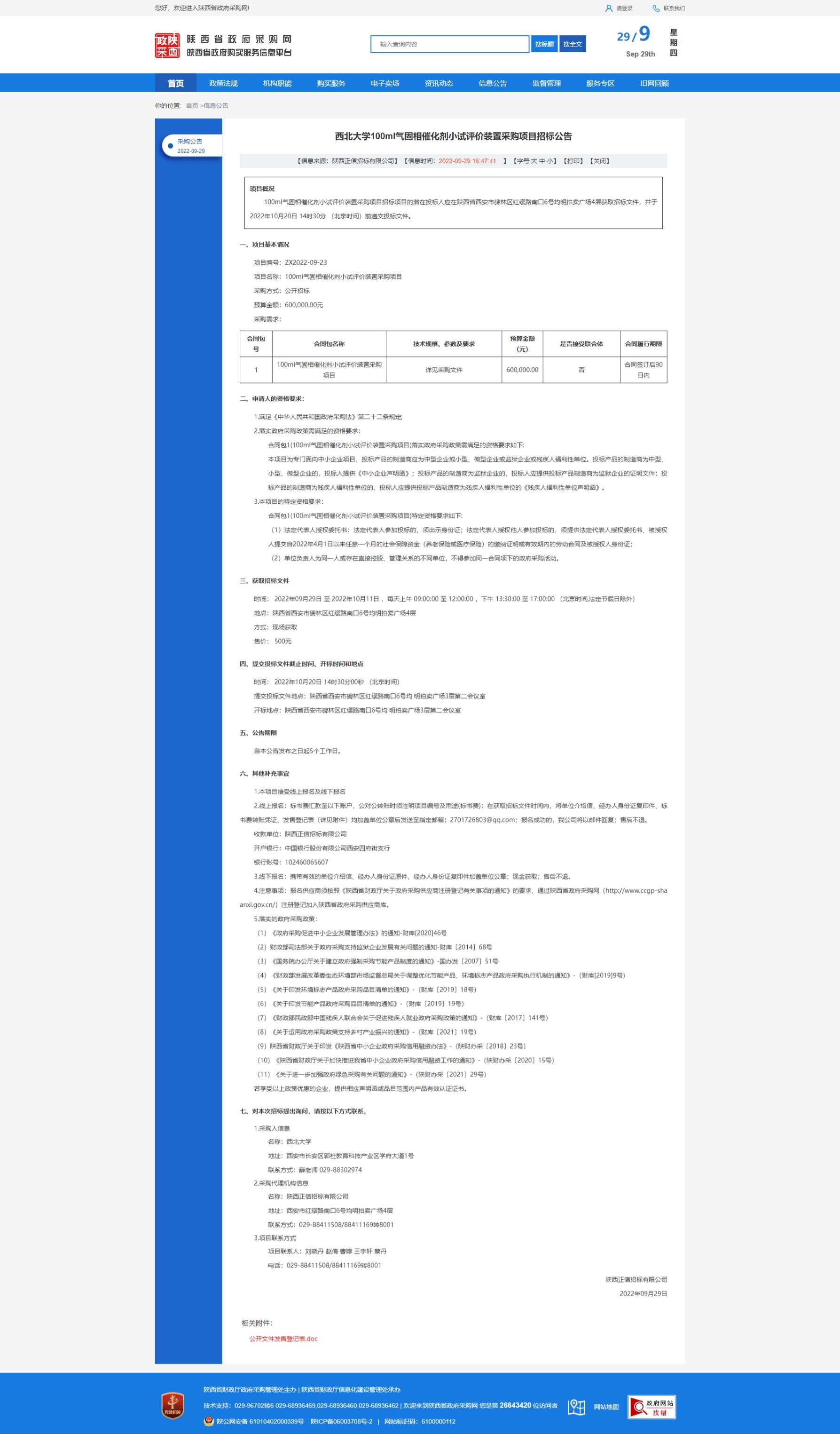 8868体育登录100ml气固相催化剂小试评价装置采购项目招标公告 作者: 编辑:采购与招标办公室 时间:2022-09-29 原公告链接:http://www.ccgp-shaanxi.gov.cn/freecms/site/shaanxi/ggxx/info/2022/8a69c59682a320a40183883502d04666.html?noticeType=001011¬iceId=eace91ac-3fd3-11ed-9a8e-08c0eb20c666