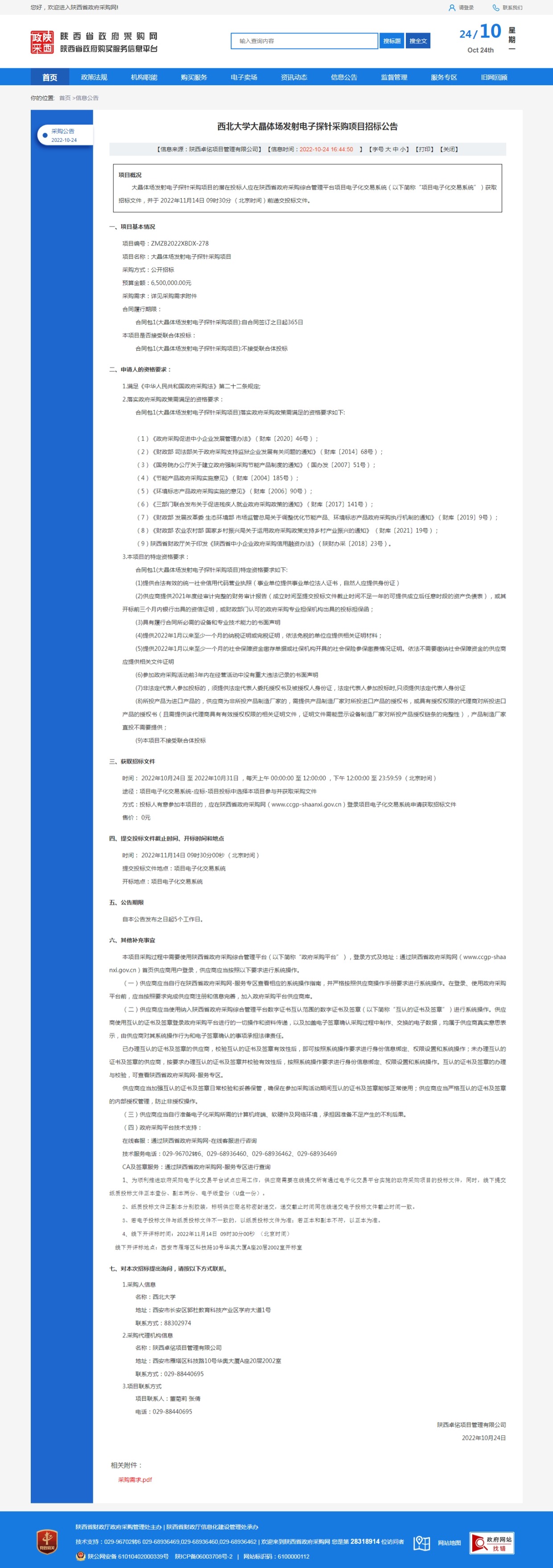 8868体育登录大晶体场发射电子探针采购项目招标公告 作者: 编辑:采购与招标办公室 时间:2022-10-24 原公告链接:http://www.ccgp-shaanxi.gov.cn/freecms/site/shaanxi/ggxx/info/2022/8a69c0398405ac32018408c2f6bb39d0.html?noticeType=001011¬iceId=b7d9a3a3-5378-11ed-9a8e-08c0eb20c666