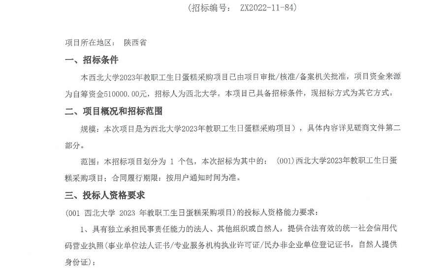 8868体育登录2023年教职工生日蛋糕采购项目竞争性磋商公告