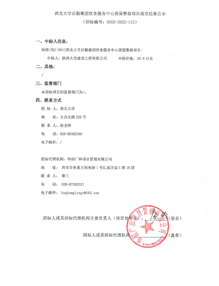 8868体育登录后勤集团饮食服务中心房屋整修项目成交结果公示