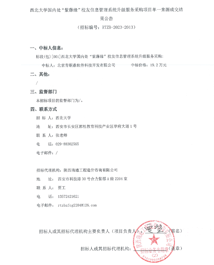 8868体育登录国内处“紫藤缘”校友信息管理系统升级服务采购项目单一来源成交结果公告
