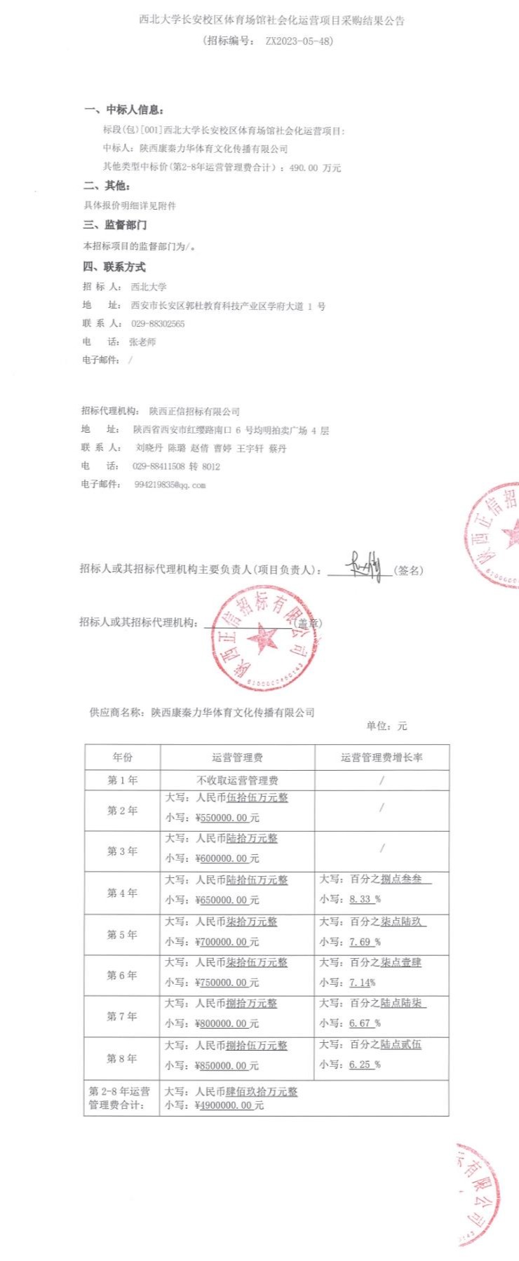 8868体育登录长安校区体育场馆社会化运营项目采购结果公告