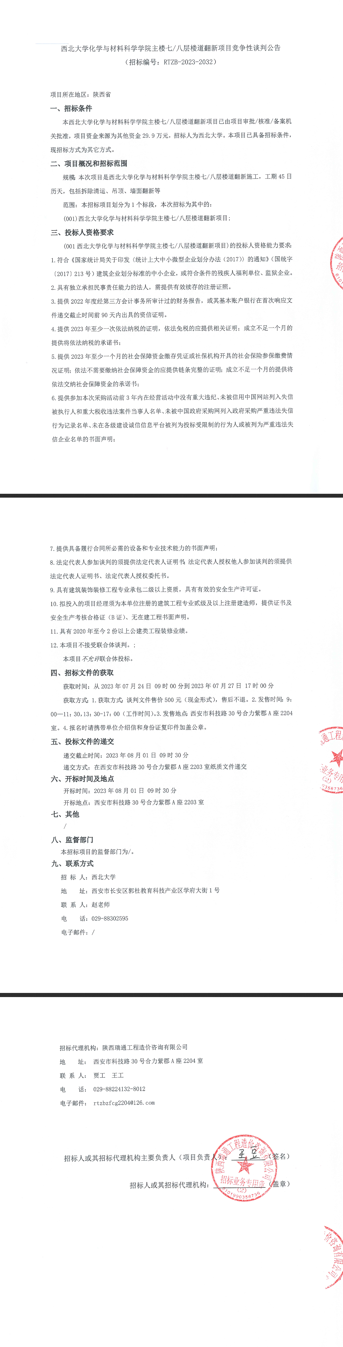 8868体育登录化学与材料科学学院主楼七/八层楼道翻新项目竞争性谈判公告