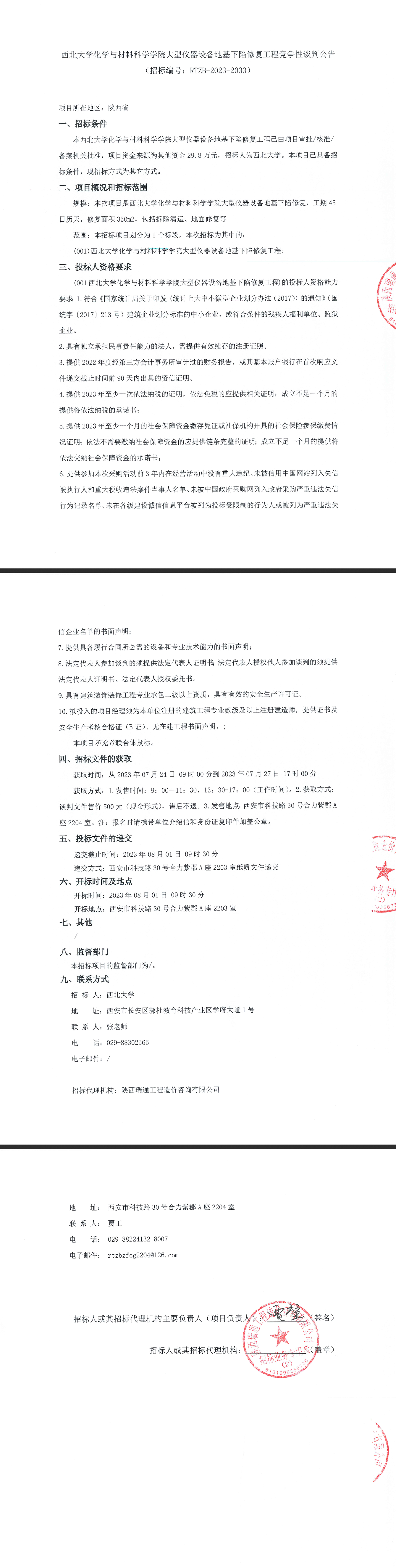 8868体育登录化学与材料科学学院大型仪器设备地基下陷修复工程竞争性谈判公告