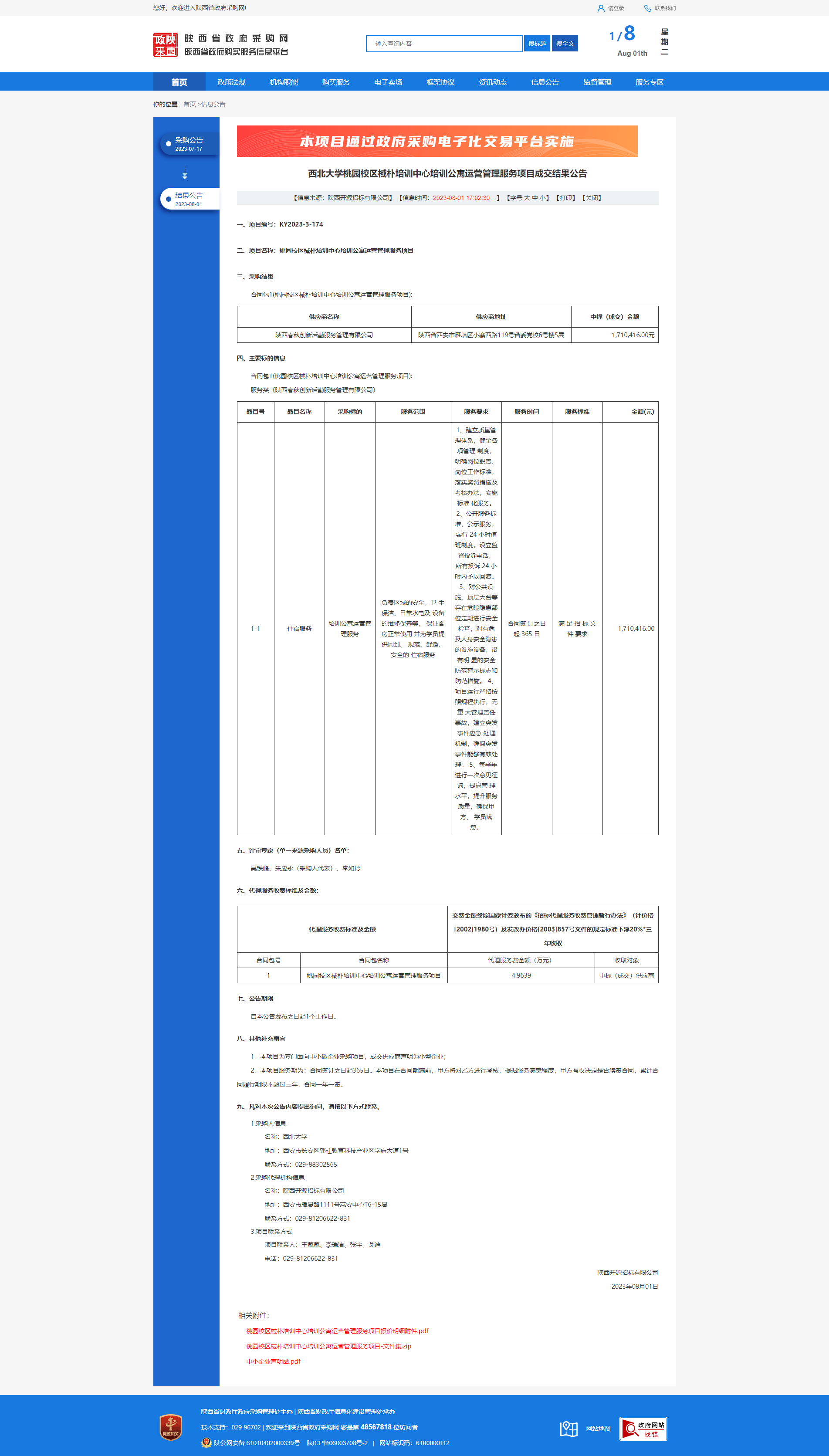 8868体育登录桃园校区棫朴培训中心培训公寓运营管理服务项目成交结果公告