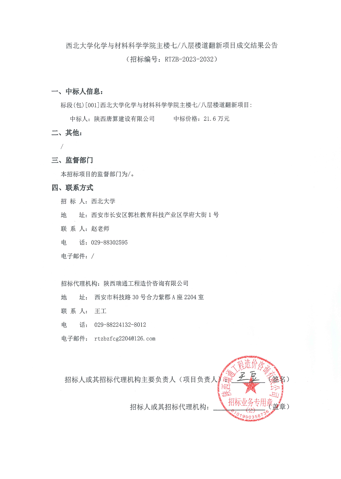8868体育登录化学与材料科学学院主楼七/八层楼道翻新项目成交结果公告