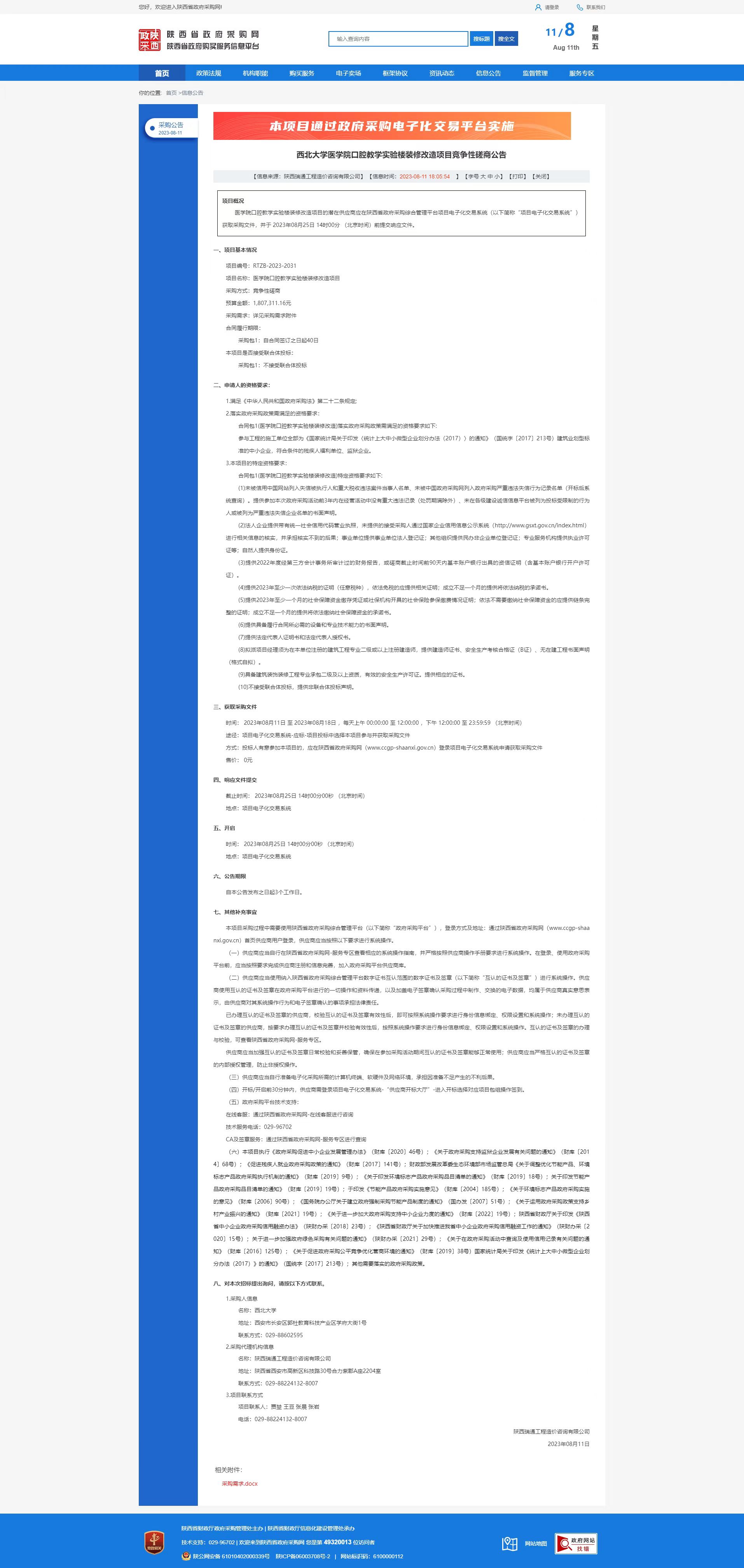 8868体育登录医学院口腔教学实验楼装修改造项目采购更正公告(第一次)