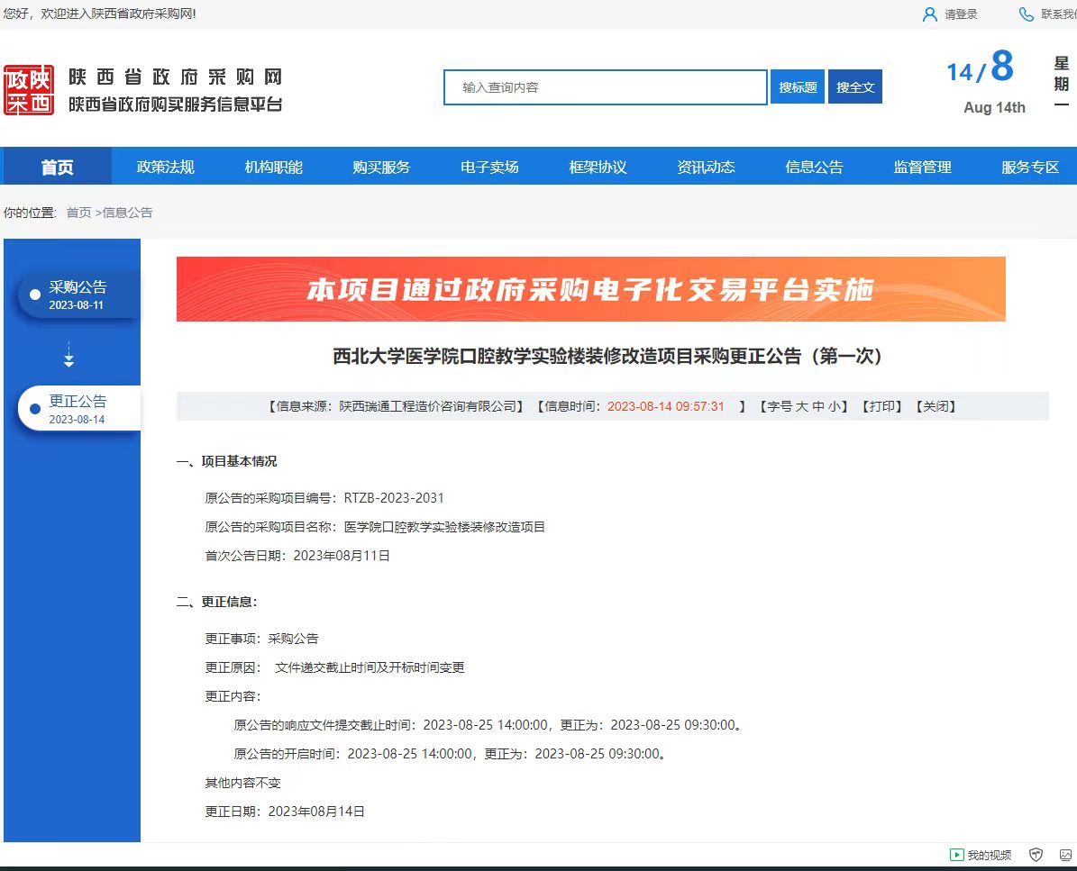 8868体育登录医学院口腔教学实验楼装修改造项目采购更正公告(第一次)