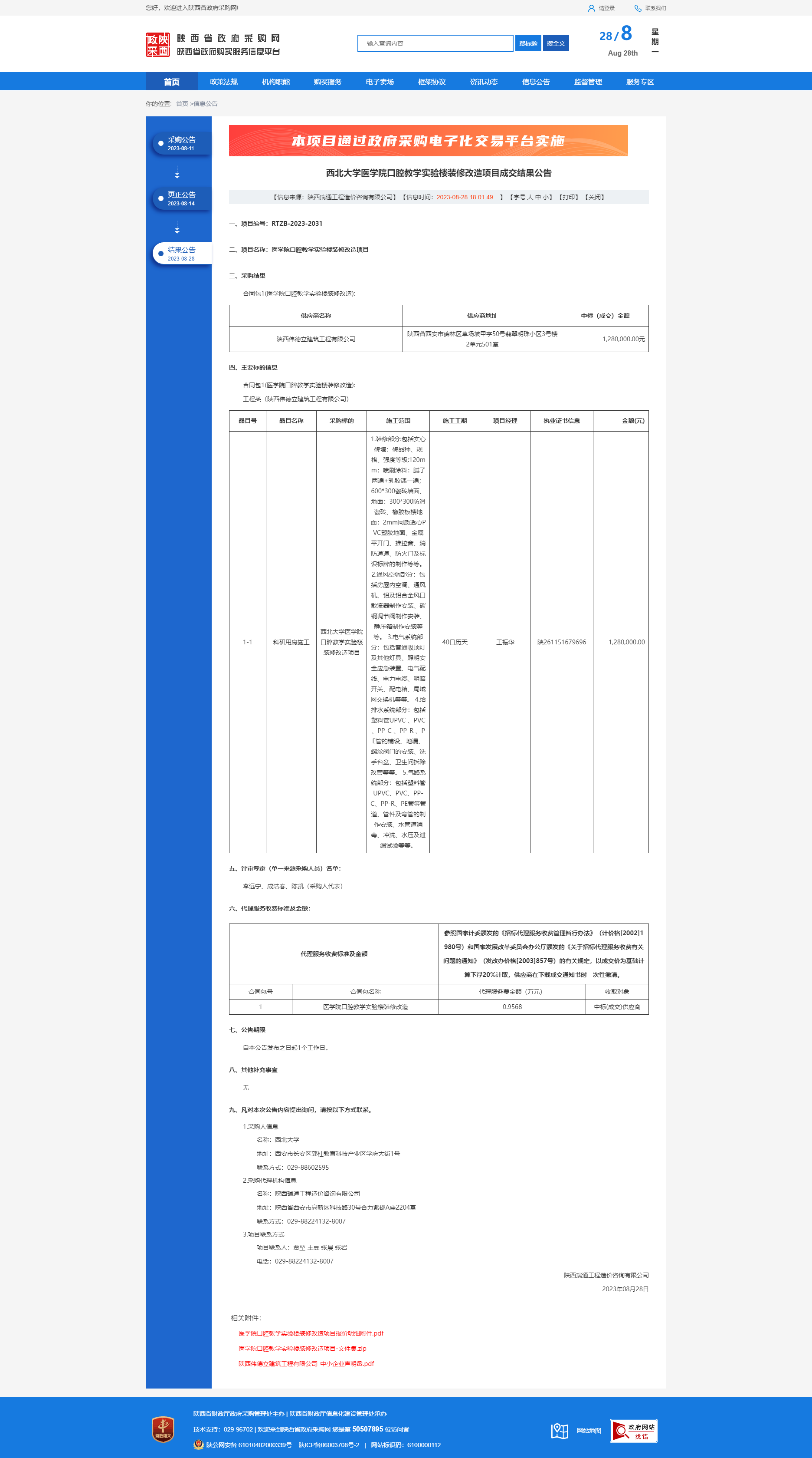 8868体育登录医学院口腔教学实验楼装修改造项目成交结果公告