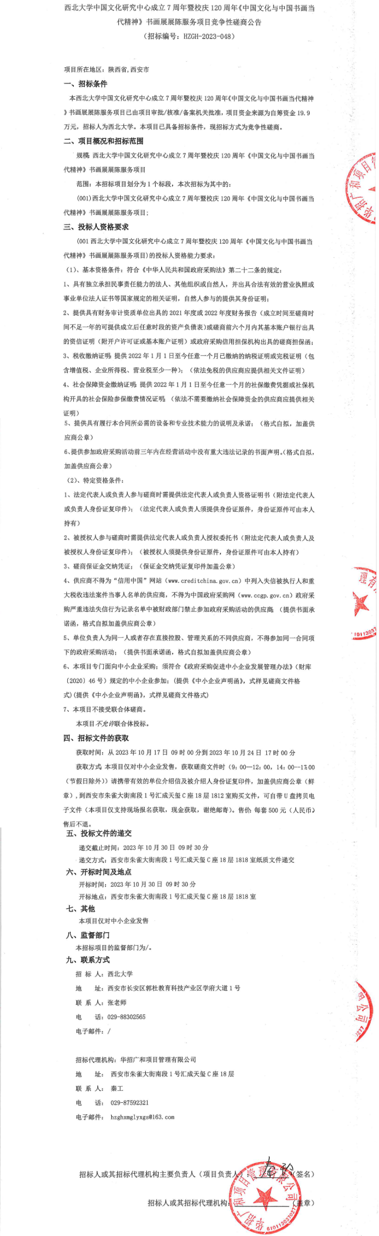 8868体育登录中国文化研究中心成立7周年暨校庆120周年《中国文化与中国书画当代精神》书画展展陈服务项目竞争性磋商公告