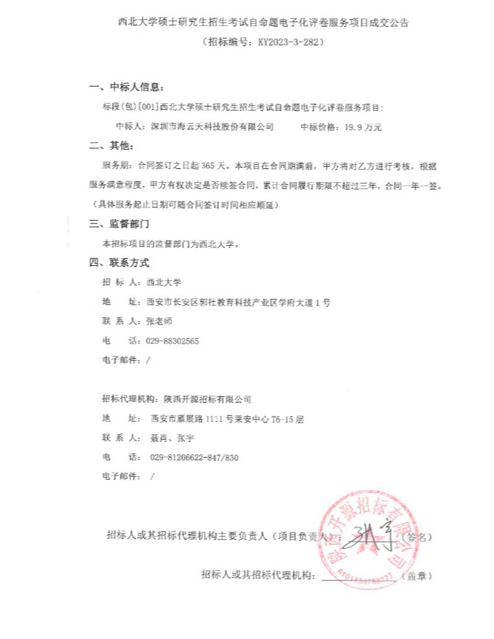 8868体育登录硕士研究生招生考试自命题电子化评卷服务项目成交公告
