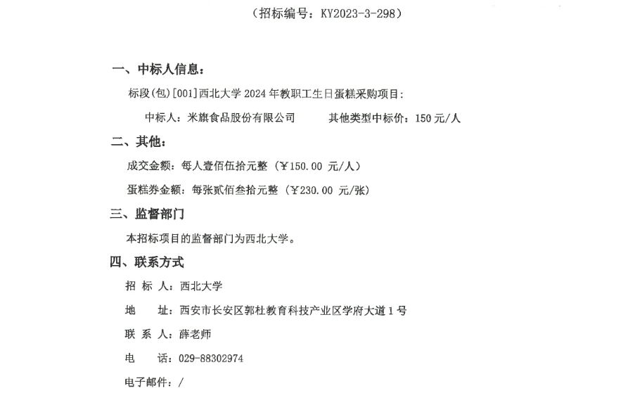 8868体育登录2024年教职工生日蛋糕采购项目成交公告 作者: 编辑:薛利娟 时间:2023-12-11 原公告链接:http://bulletin.sntba.com/resultBulletin/2023-12-11/900882.html