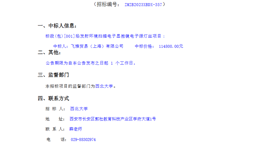 8868体育登录场发射环境扫描电子显微镜电子源灯丝项目采购结果公告 作者: 编辑:采购与招标办公室 时间:2023-12-14 原公告链接:http://www.sntba.com/website/gg_show.aspx?id=263188