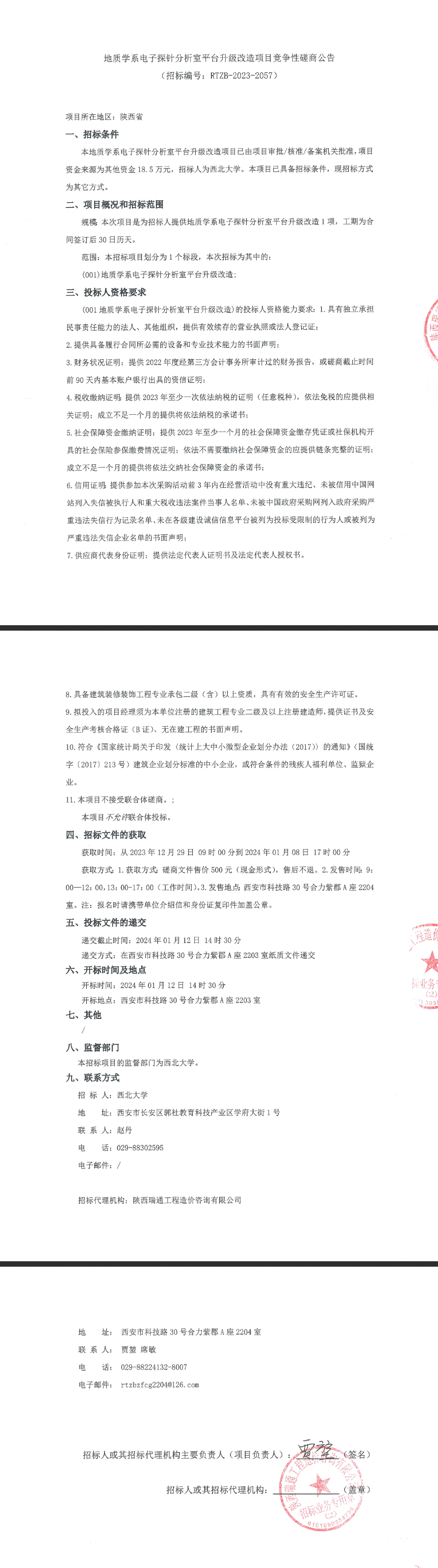 8868体育登录地质学系电子探针分析室平台升级改造项目竞争性磋商公告